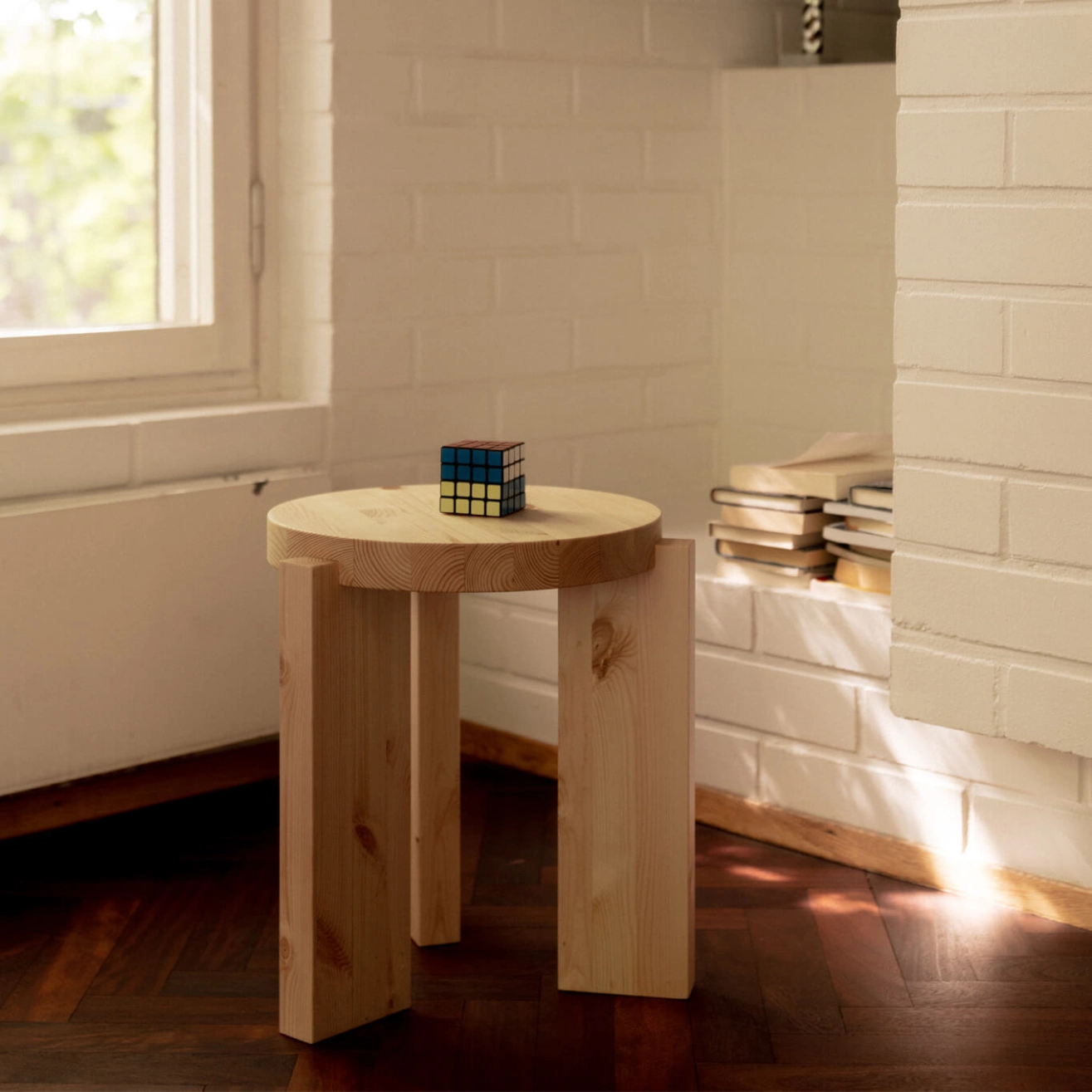 Made in Finland from local wood, the 001 stool by Vaarnii embodies the essentials with strength and simplicity. Staying true to designer Fredrik Paulsen’s approach, this compact seat retains the bold lines and robust construction that define the entire 001 collection. Although the smallest member of the range, the 001 stool stands out with its solid structure, crafted from wide sections of Finnish pine. This choice of material gives the stool excellent stability while keeping it light enough for everyday and mobile use. Designed to meet practical daily needs, the 001 stool by Vaarnii combines functionality, durability, and timeless design. Made in Finland from local wood.