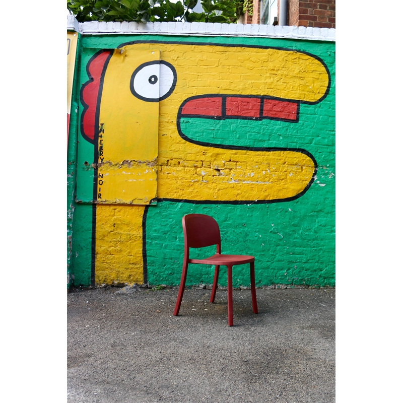 1 Inch Reclaimed chair stands out for its simple shape, the refined uniformity of a single material, perfect comfort and understated grace. Made from 90% industrial waste, including 75% polypropylene and 15% wood fibre,