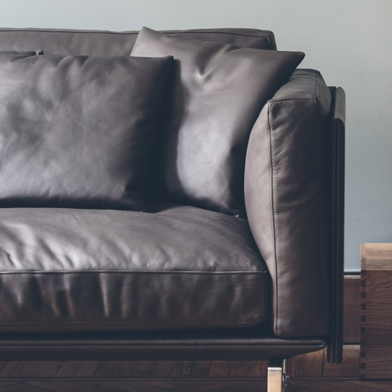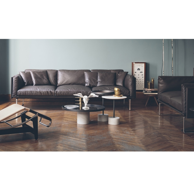 This sofa is part of a modular collection designed by Piero Lissoni for Cassina. The seat structure is made of extruded aluminium with elastic straps covered with leather or fabric. The seat and back cushions are upholstered in polyurethane foam. The upholstery is available in leather or fabric in various colours. Both sleek and welcoming, the 8 three-seater sofa offers lasting comfort over time.