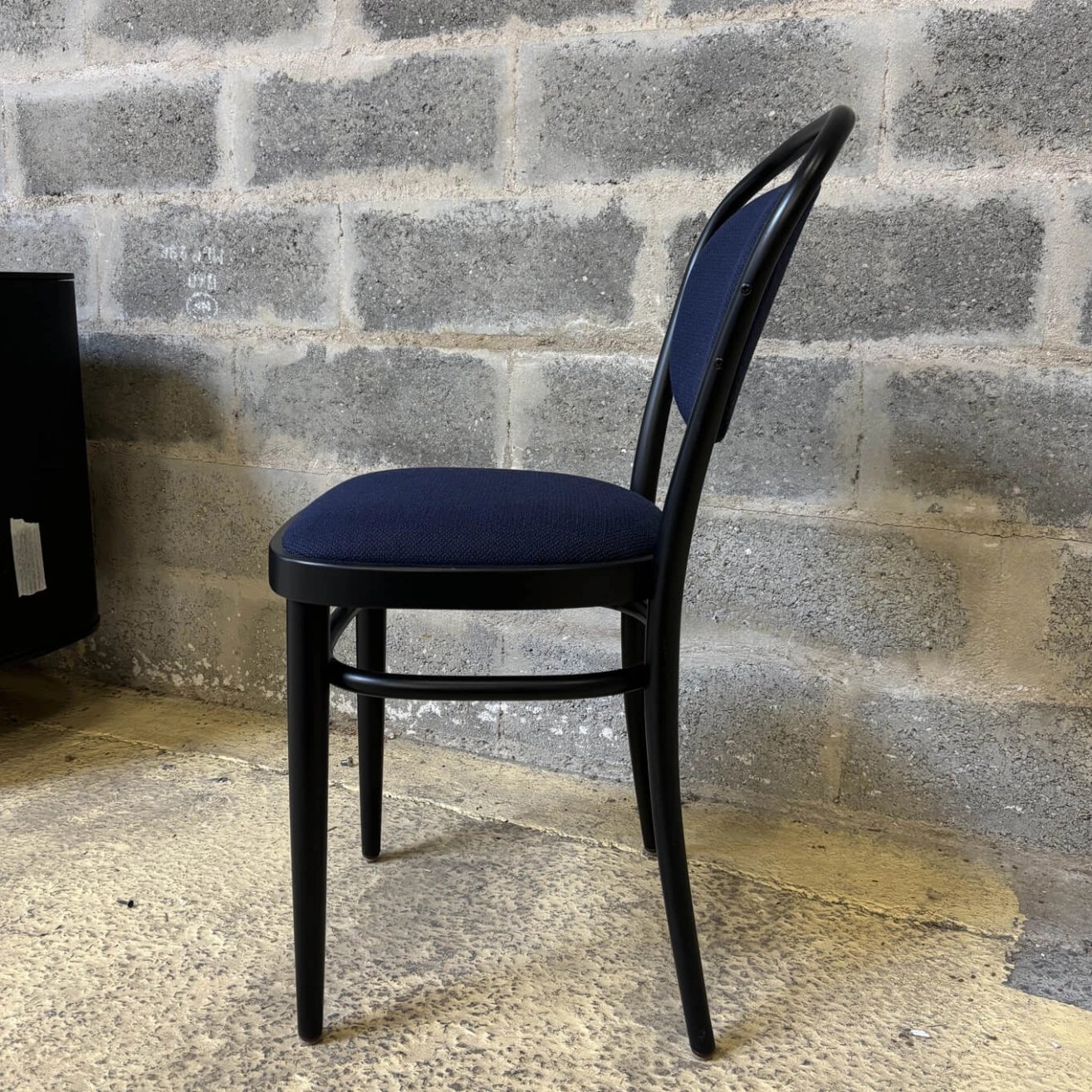 The pre-owned 215 P chair by Thonet embodies the timeless elegance of Viennese design, combined with the unique artisanal expertise of the German house founded in the 19th century. Inspired by the iconic lines of the classic bistro chair, this model revisits the tradition of bentwood with finesse and lightness. Its recognizable silhouette, with its open, rounded backrest, reflects a historic heritage while meeting contemporary standards of comfort and durability. Crafted from solid bent beech wood using the signature technique developed by Michael Thonet, the 215 P balances structural strength with visual lightness. The curved back and slightly flared legs ensure excellent stability while giving the whole piece a fluid and harmonious form. The 215 P model stands out for its upholstered seat, covered in fabric, offering enhanced comfort compared to the traditional unpadded version. Available in a variety of wood stains, finishes, and upholstery options, the chair can be customized to suit both domestic interiors and public spaces such as cafés, restaurants, or meeting rooms. Lightweight, stackable, and easy to move, it represents a functional yet aesthetically refined approach to furniture. A symbol of tradition and innovation, the pre-owned 215 P chair by Thonet carries forward the spirit of classic design while responding to contemporary needs for ergonomics, modularity, and style.