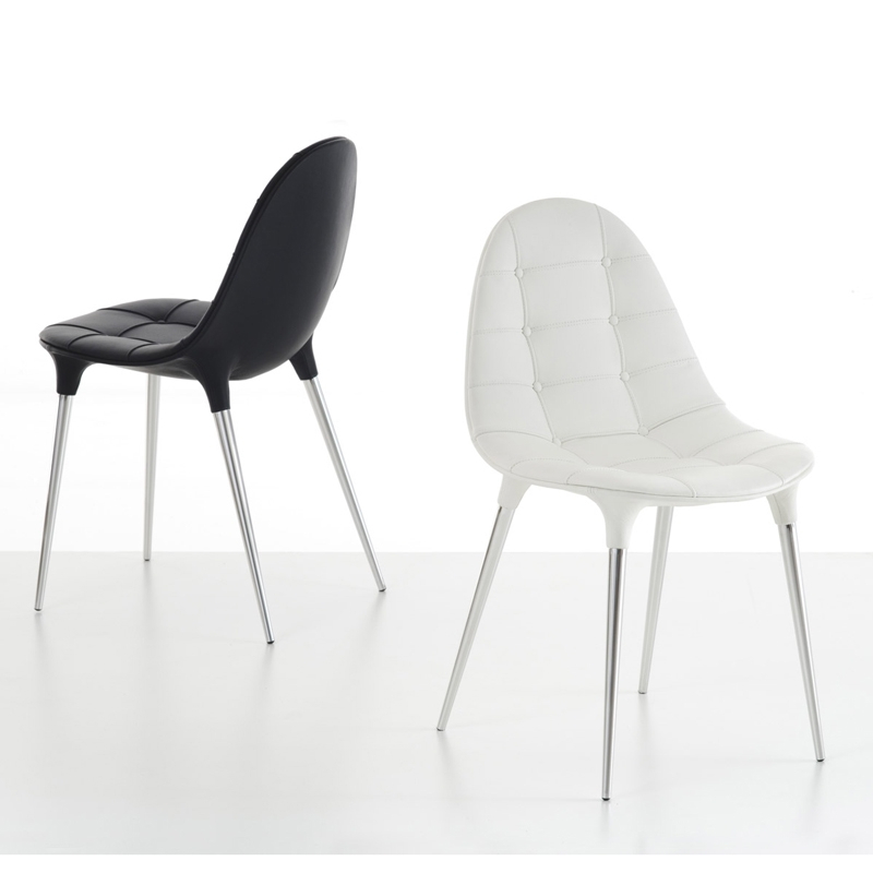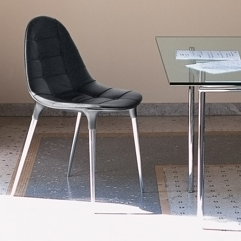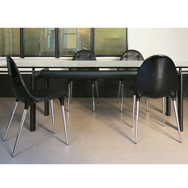 Designed by Philippe Starck, Caprice is a chair that stands out thanks to its high level of comfort and its soft and welcoming lines. The shiny nylon shell is padded on the inside and covered with leather, making it both very comfortable and durable over time. The four conically shaped chrome-plated steel legs complement the seat perfectly and create a light silhouette. Produced by Cassina, the Caprice chair suits all atmospheres and brings a touch of subtle elegance and comfort. It can be combined with the small Passion armchair from the same series.