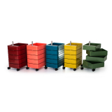 360° storage unit is designed for non-static workspaces. Available in an alternation of warm and cool colours such as yellow, pink, burgundy, blue and green,