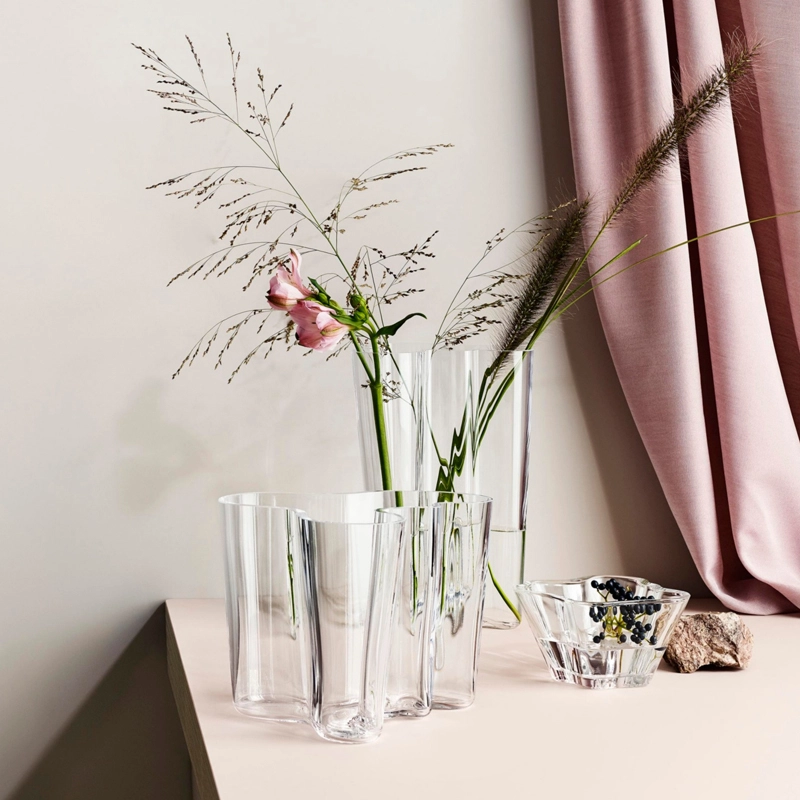 Alvar Aalto is one of the most significant figures in 20th-century design and architecture. He created his own style inspired by man and nature. Aalto believed that good design should be a part of everyday life and created versatile, sensitive products to improve daily life. He never indicated how his glass objects were to be used, wanting users to decide their purpose for themselves. The undulating, flowing, organic shapes of the objects in this collection evoke the thousands of lakes that punctuate Finnish landscapes. Iittala's glassblowers continue to make these legendary, stunningly beautiful vases by hand today. Aalto vase is available in various sizes and colours. Since it was first introduced in 1937 at the Exposition Universelle de Paris, the Aalto collection has become a true design classic.
