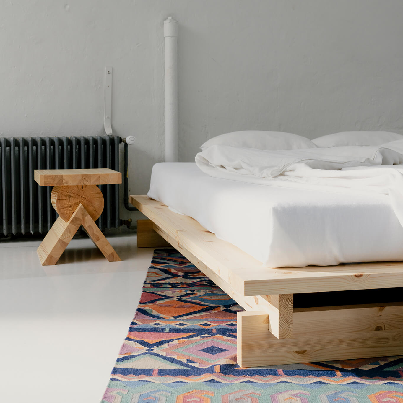 The Aamu bed frame by Vaarnii embodies a vision of design that is both radical and essential, created for those who seek the same aesthetic rigor in their bedroom as in the rest of their interior. Made from thick panels of Finnish pine, it assembles without screws or additional parts thanks to an ingenious interlocking system. Aamu features a clean, deliberately understated silhouette that highlights the raw beauty of the wood while ensuring long-lasting stability. Designed by Vaarnii’s in-house design team, the Aamu bed frame is delivered flat-packed and available in two sizes. Once assembled, it is built to accompany you night after night, for many years to come.