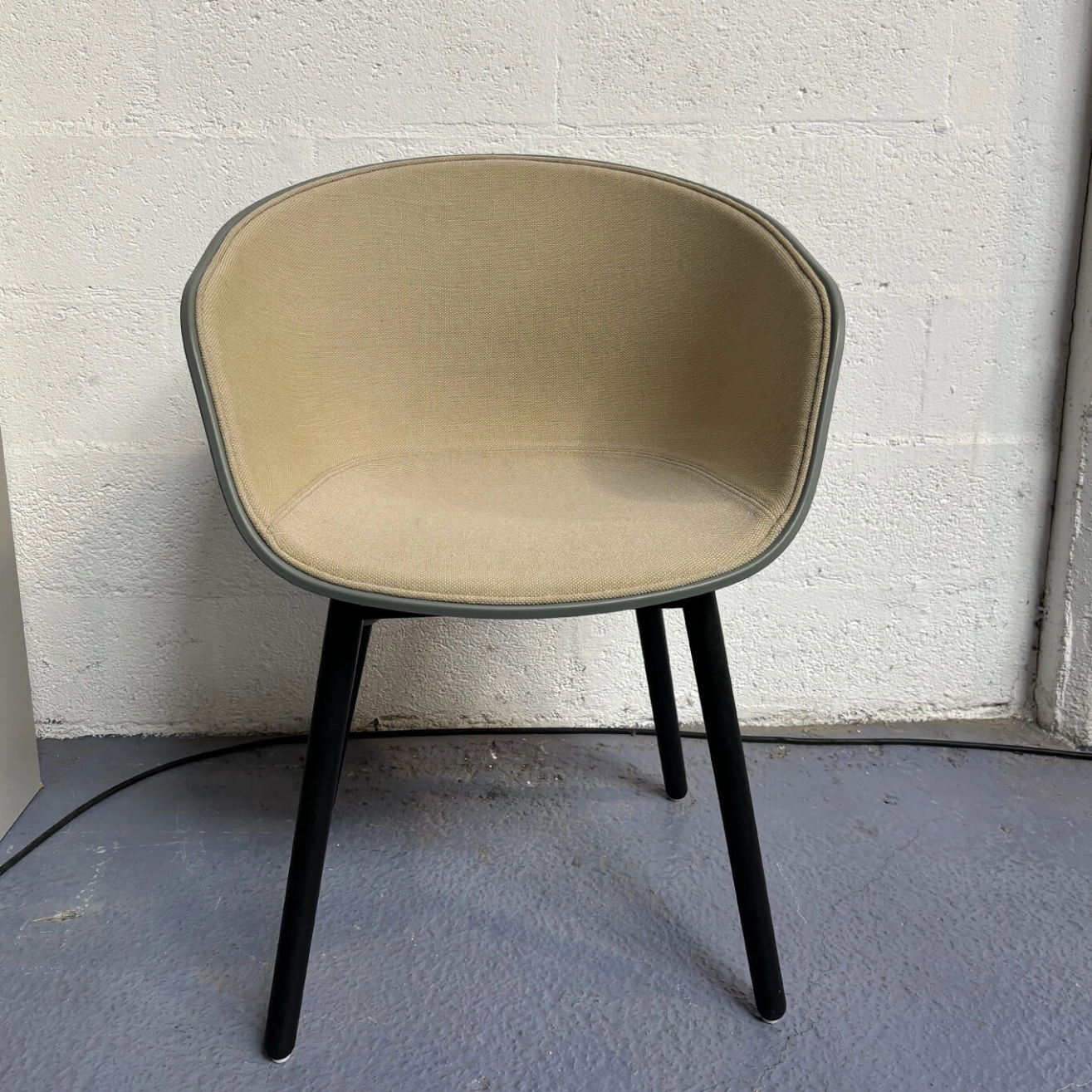 La chaise d'occasion About A Chair de HAY est l’une des créations les plus emblématiques de la marque danoise, pensée pour offrir un équilibre subtil entre simplicité, confort et fonctionnalité. Sa silhouette épurée, caractérisée par une coque enveloppante aux lignes douces, permet un maintien agréable du dos et une posture naturellement confortable. Le piètement, solide et finement travaillé, reflète l’approche minimaliste du design scandinave, où chaque détail est pensé pour durer et s’intégrer harmonieusement à différents styles d’intérieurs. Conçue pour être polyvalente, la chaise AAC trouve aisément sa place autour d’une table de salle à manger, dans un bureau, une salle de réunion ou même en chaise d’appoint dans un séjour. Elle allie esthétique discrète et confort quotidien, ce qui en fait une pièce d'occasion largement appréciée dans les environnements contemporains. Le tissu de l’assise présente une petite tache, visible de près mais relativement discrète, n’ayant aucune incidence sur l’usage ou la stabilité de la chaise. Mis à part ce léger défaut d’ordre esthétique, la pièce est en très bon état général et conserve toute la qualité et l’élégance propres aux créations HAY. C’est une opportunité idéale pour acquérir une chaise design, durable et intemporelle, à un tarif plus accessible.