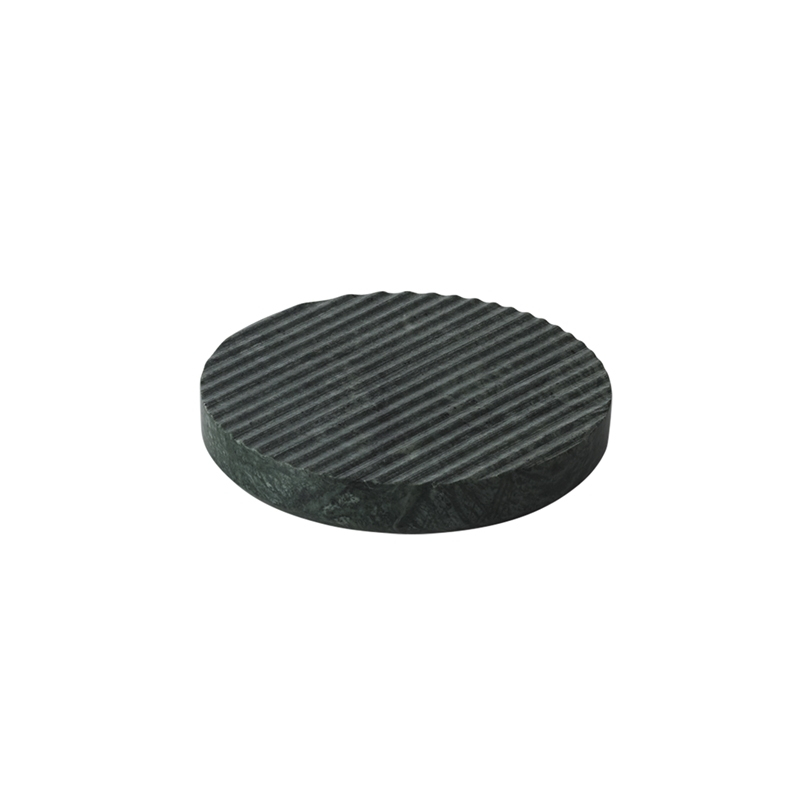 Groove round trivets are both functional and decorative. Grooves are carved into the surface to allow air to circulate underneath, preventing them from becoming too hot. Produced by Muuto, Groove coasters are available in two diameters, but with the same height, so several coasters can be used for a large dish. Made of coloured marble, these coasters are also very aesthetic on the table even when not in use.
