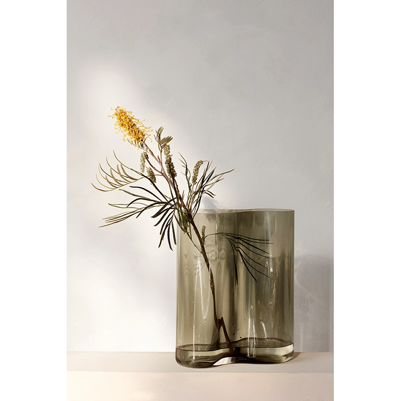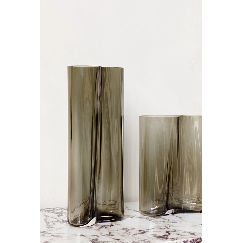 Menu, brings a sculptural touch to the space. Taking its name from the Latin word for “air” or “vapour”, the asymmetrically-shaped vase undulates like a liquid, bringing an almost ethereal, tactile quality to the glass. Available in two sizes, the