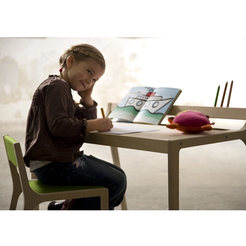 Afra is a desk for children aged 2 to 8 years old, made of finely sanded birch plywood. There is a felt-tipped pen holder in the tray, available on request. ... Learn more