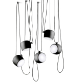 Produced by Flos, Aim is a pendant light with a strong design that provides directional lighting or a custom light setting. The Bouroullec brothers explain their concept as follows: "We have developed a new type of lamp that is naturally positioned in space – like a plant – with long cables providing maximum freedom to adjust the direction and height of the light source." The long cable, which is an integral part of the lamp's design, allows the light to be aimed in any direction simply by sliding it. With this 9 metre cable, Aim can be hung more than 3 metres from the ceiling.