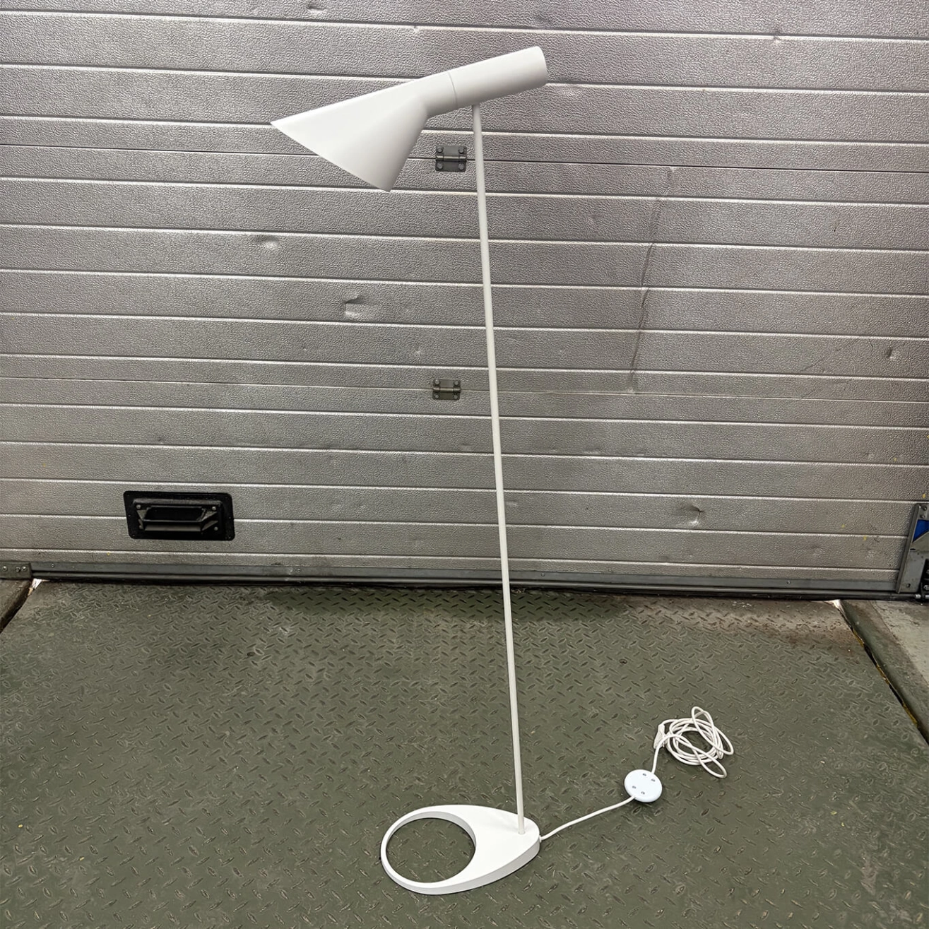 Dessinés par Arne Jacobsen et édités par Louis Poulsen en 1960 pour le SAS Royal Hôtel à Copenhague (Radisson Blu), les luminaires AJ d'occasion faisaient partie, à l’origine, du concept de design complet créé pour l'Hôtel. Arne Jacobsen a non seulement dessiné les plans de l’hôtel, mais aussi imaginé dans les moindres détails la décoration intérieures de ce dernier. Bon nombre de produits dessinés à cette occasion sont aujourd'hui des icones du design, comme les fauteuils Egg et Swan. Les lampes AJ d'occasion ont obtenu également une renommée mondiale. Le lampadaire AJ Floor est caractérisé par la forme asymétrique particulière de son abat-jour orientable. L’orifice dans son socle souligne l’élégance et la légèreté du design. Edités par Louis Poulsen et disponibles en lampe de table et en lampadaire, les luminaires AJ émettent une lumière dirigée vers le bas. L'angle de l'abat-jour peut être modifié afin d'optimiser l'éclairage. Les luminaires AJ de Louis Poulsen restent au fils du temps des classiques modernes dans le domaine des luminaires design. L'intérieur de l'abat-jour est peint en blanc afin de rendre la lumière plus douce et confortable. Le AJ Floor est disponible en trois couleurs : blanc, noir et graphite.