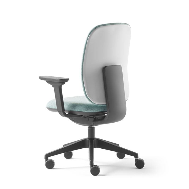 Designed by Iratzoki & Lizaso, the Alaia seating collection features soft, organic lines that inspire well-being, sympathy and simplicity. With a perfect fusion of form and function, the seat/backrest link is the strong point of the Alaia seat in its upholstered version. Both voluminous and curved, this piece contrasts with the grey shell and gives it character and softness. With 3 mechanisms and 2 types of armrest, Alaia offers users personalised comfort. This office chair responds to the need to create workspaces with an eye to well-being in one's home: places where one can exchange, communicate, transform and build.