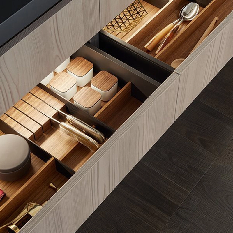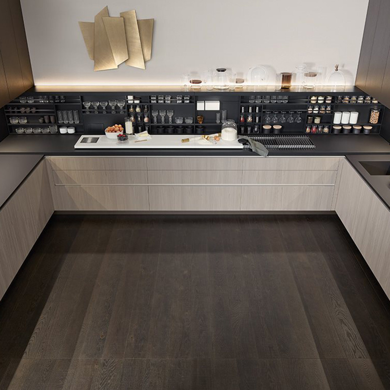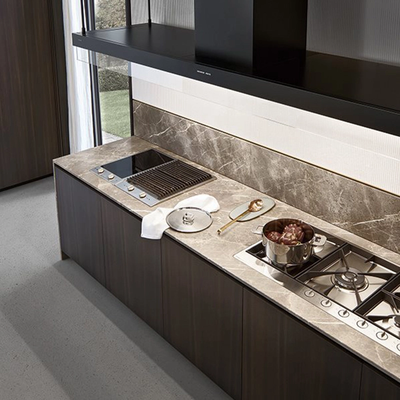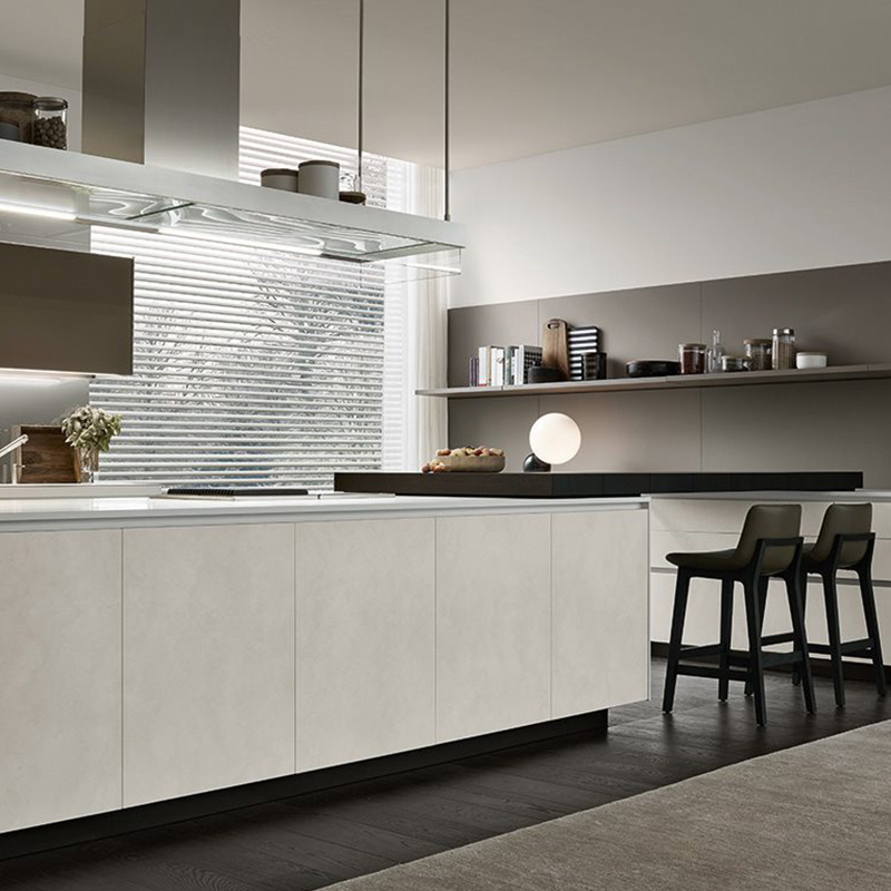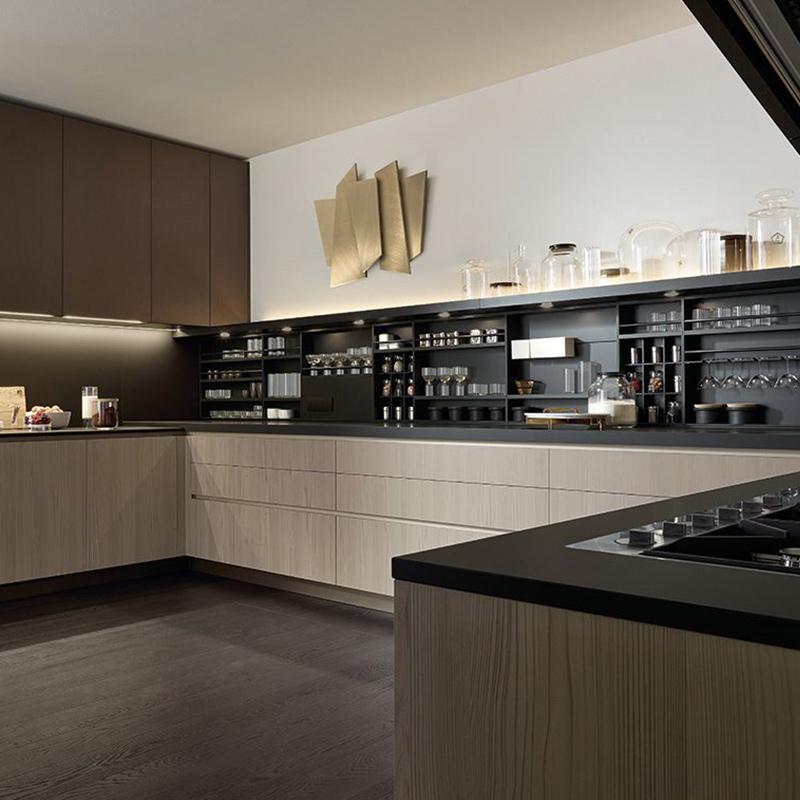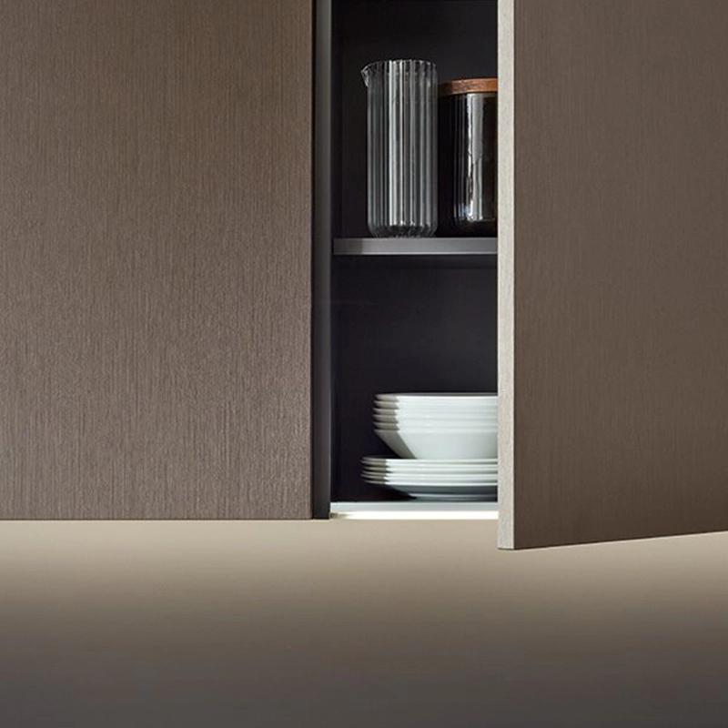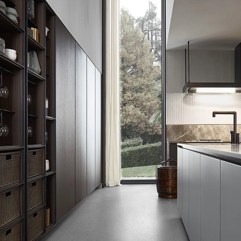 Poliform is linked to the strong thickness of the lines that characterise each composition, each element, becoming once edge, once frame, once structure. The storage elements, the work surfaces, built against the walls or in islands become true geometric "solid", surfaces that emphasise the high-quality of their raw materials. Contact us for more information.