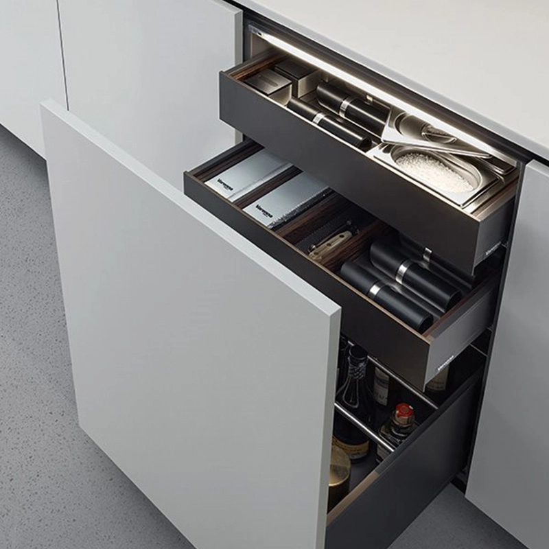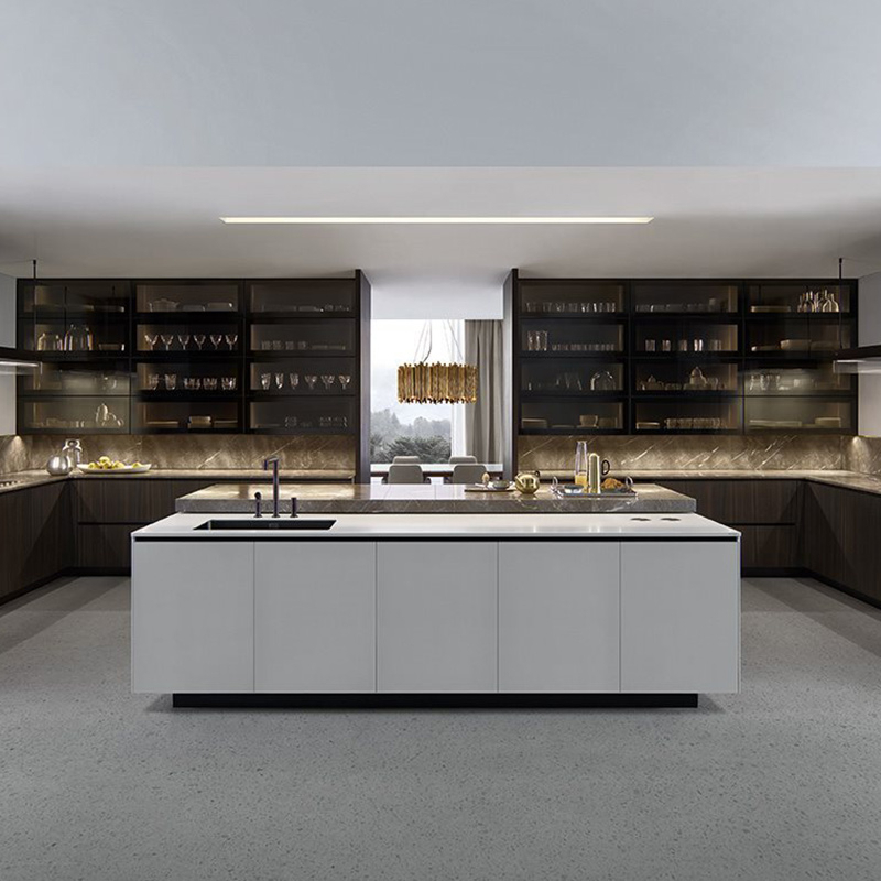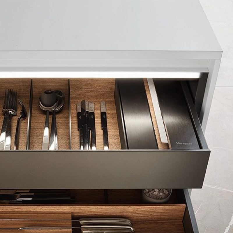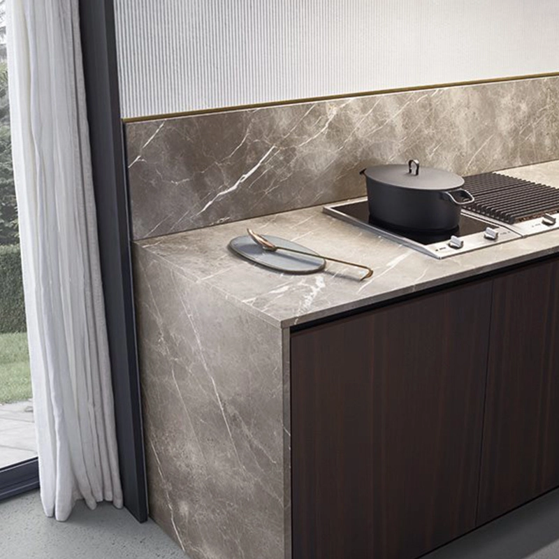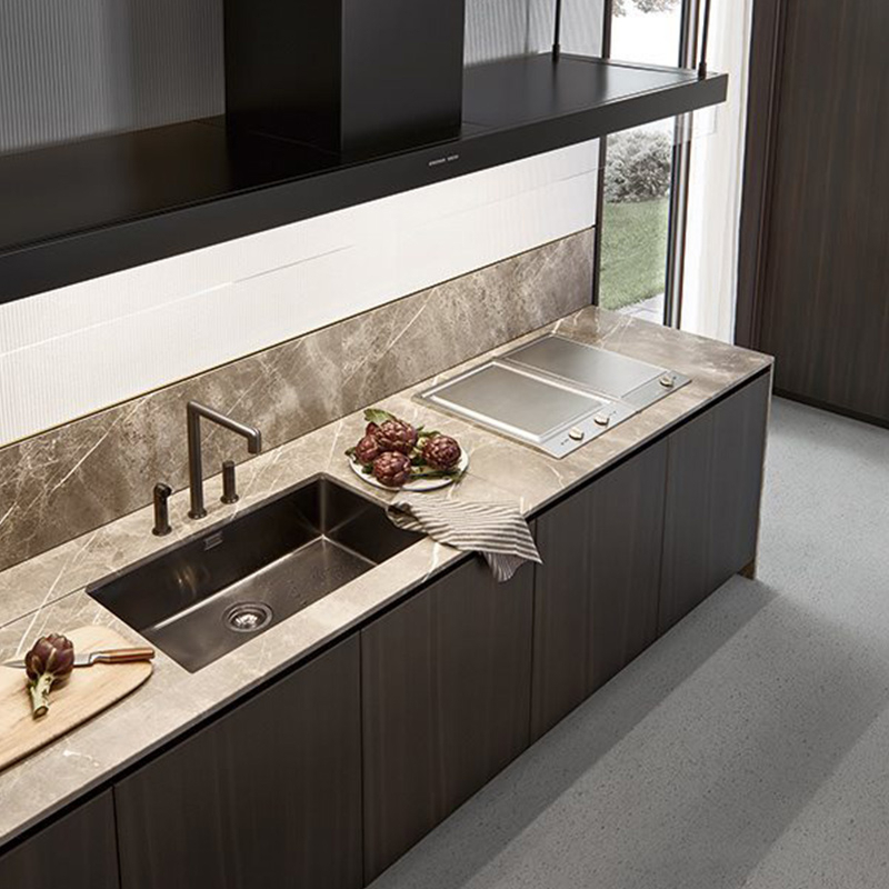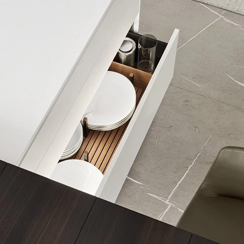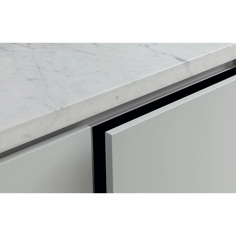 Poliform is linked to the strong thickness of the lines that characterise each composition, each element, becoming once edge, once frame, once structure. The storage elements, the work surfaces, built against the walls or in islands become true geometric "solid", surfaces that emphasise the high-quality of their raw materials. Contact us for more information.