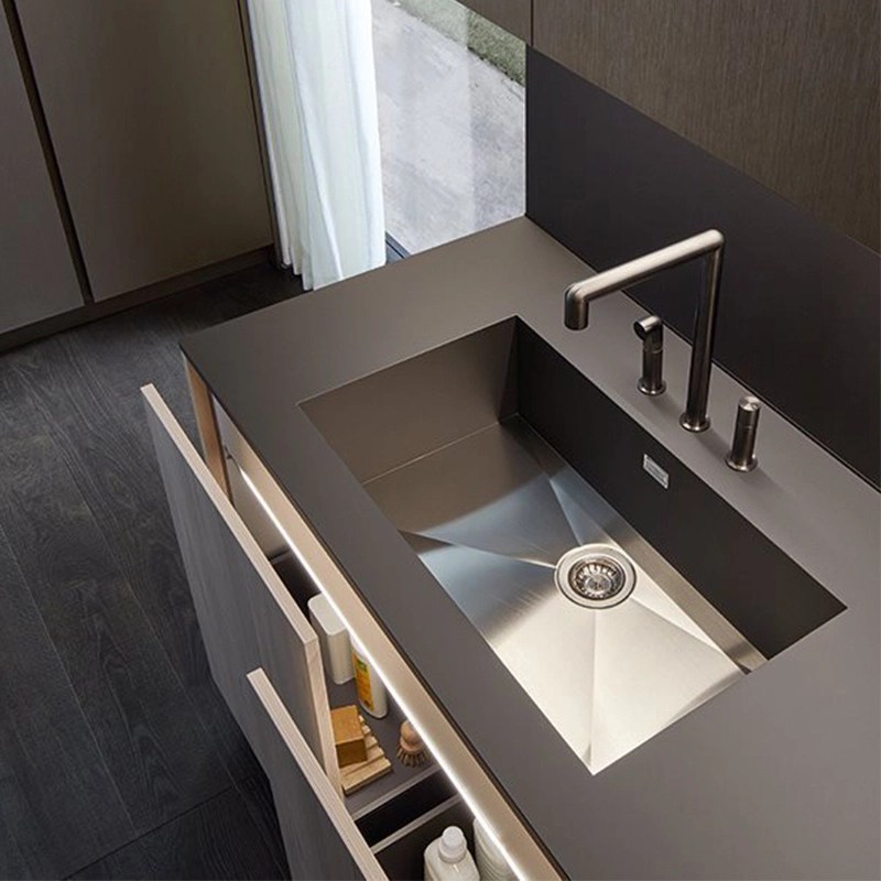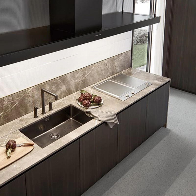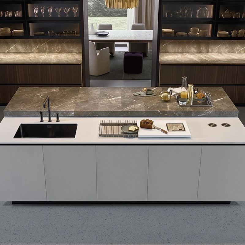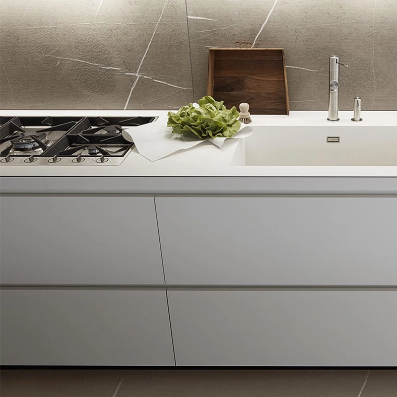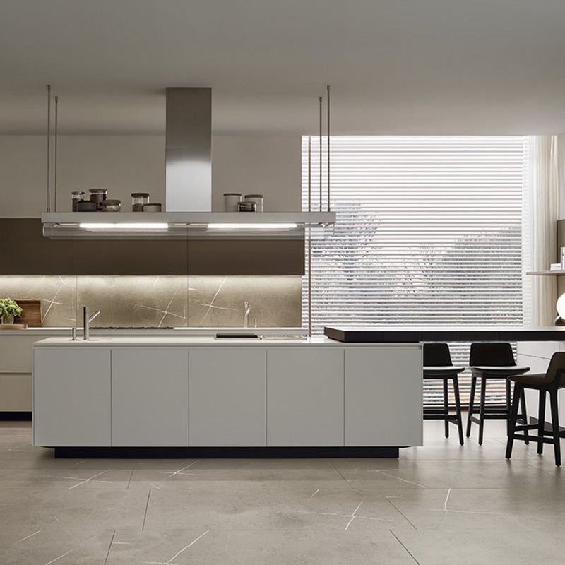 Poliform features a rigorous design for a new definition of the kitchen. A project with “minimal” formal connotations: each functional unit is reduced to the purest design, to its most essential form, while maintaining a high capacity for work. The aesthetic conception of the