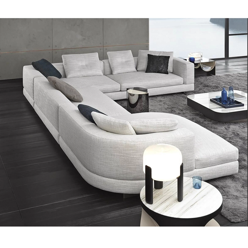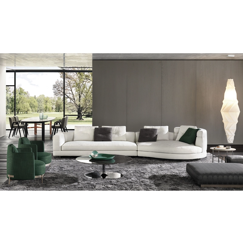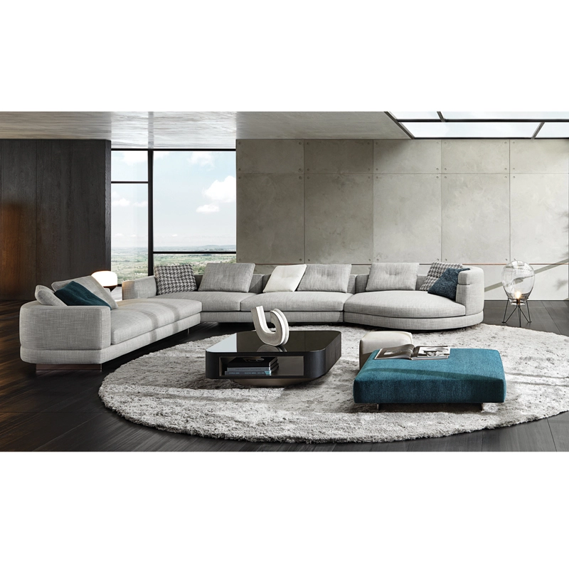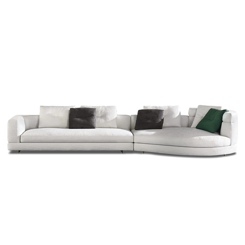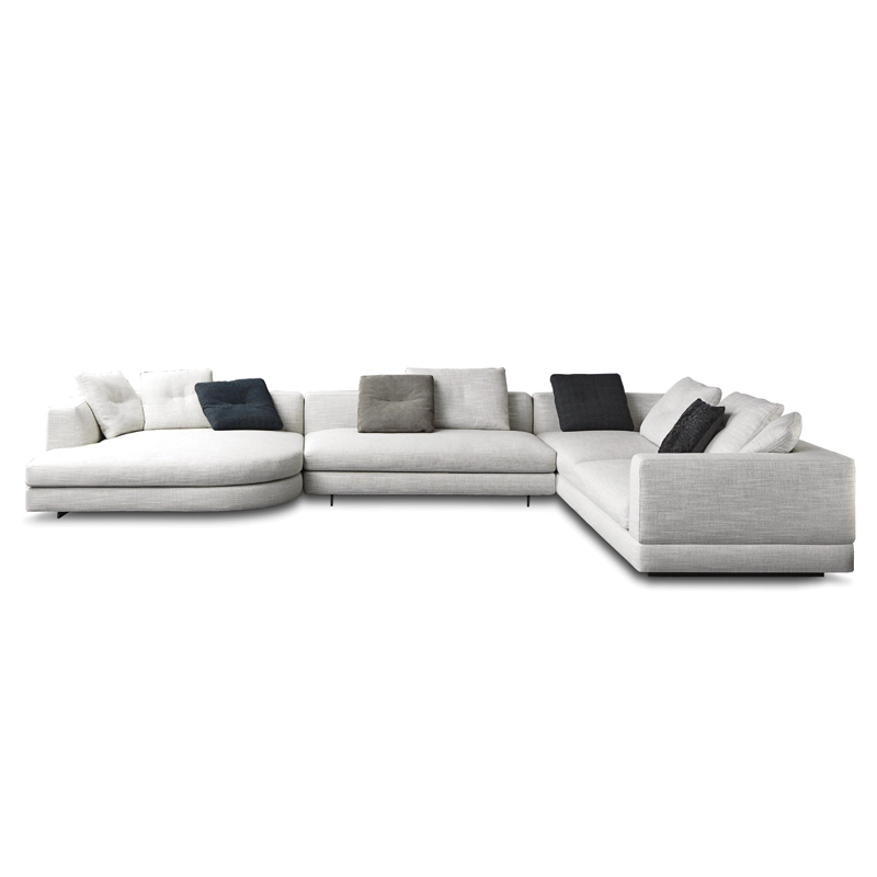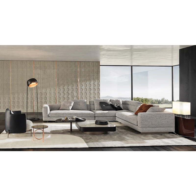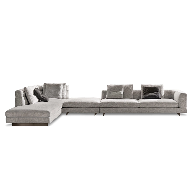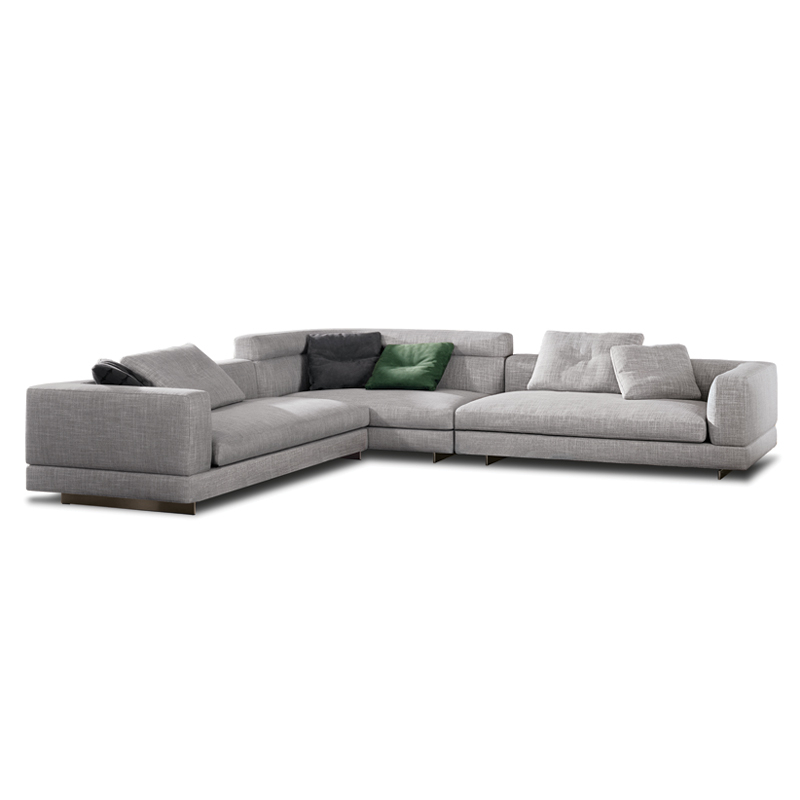 Minotti collection are inspired by the world of fashion: the stitching on the corner of the sofa and on the high back/armrest and the central stitching on the back cushions. The base, made of light bronze-coloured aluminium, gives the sofa a feeling of weightlessness, as though it were floating above the ground. With numerous fabrics available and all possible sizes,