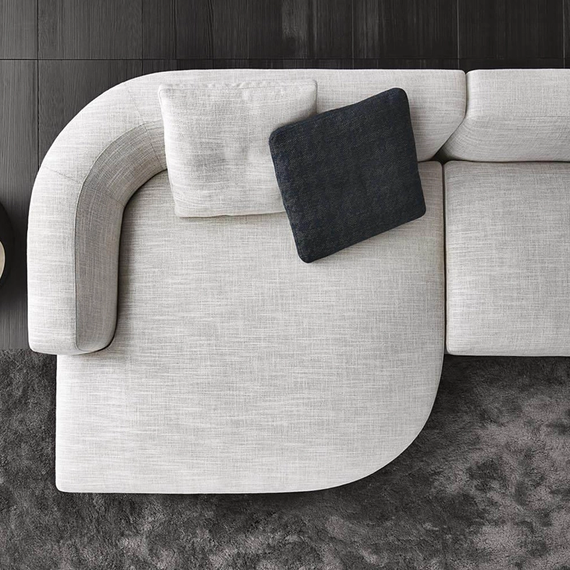 Alexander is a seating system of different shapes, inspired by rationalist and contemporary concepts. The collection's different elements can be combined to form a single composition – an intimate and inviting sanctuary. A high or low backrest, or a combination of both, can be added to each square or curved seating module. The high-back elements allow you to create intimate alcoves where you can curl up to read or watch TV. The details of the