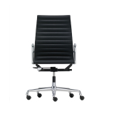 Designed by Ray and Charles Eames, the Aluminium Group office chair is one of the biggest design creations of the 20th century. The main feature of the Vitra range is its clever assembly of materials to achieve maximum comfort: the cladding is fixed and stretched over the side aluminium profiles, resulting in a load-bearing component in the structure. The Aluminium Group has been studiously designed to fit the form of the human body. This office chair has an adjustable back tilt mechanism and can be locked in the forward position. The seat height is infinitely adjustable thanks to a gas spring. The backrest and seat are padded and upholstered in black or brown leather. The frame is made of die-cast aluminium. The base is equipped with 5 black castors. Its 50 years of existence make it a design classic.