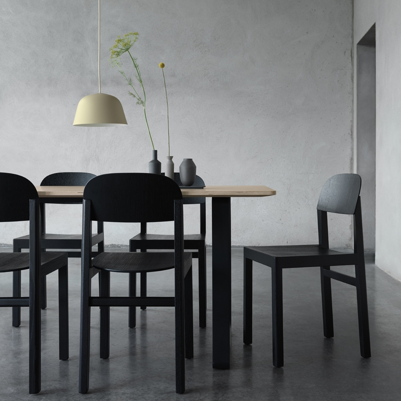 Created by Taf Studio, Ambit is a suspension with sleek, seductive shapes and generous proportions. Muuto produces this luminaire using the ancient tradition of braziers: the aluminium is turned in a press, polished and painted by hand. A marriage of tradition and modernity, Ambit is available in several colours and different sizes, fitting equally well above the dining room table, in the kitchen or the hallway.