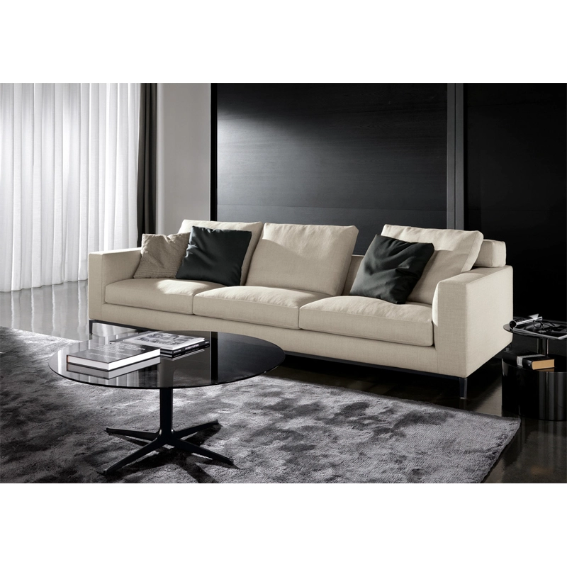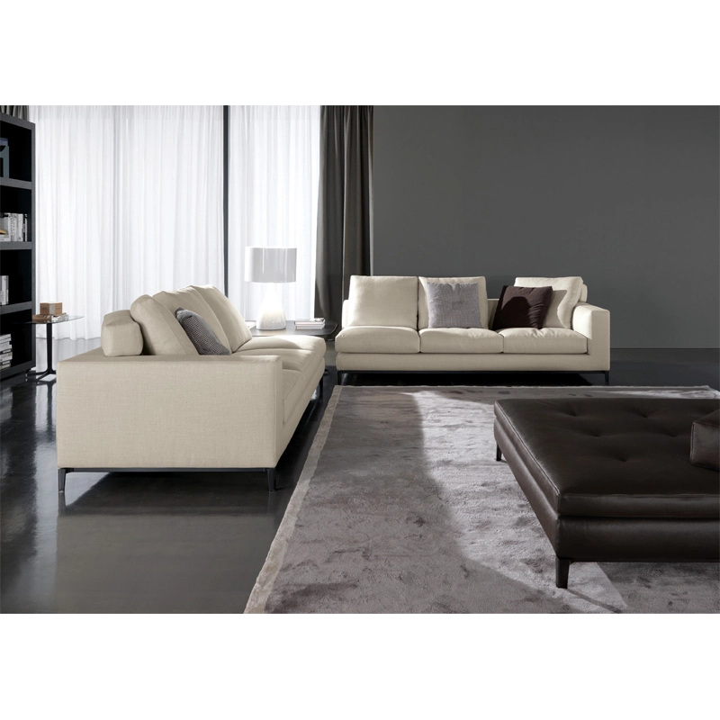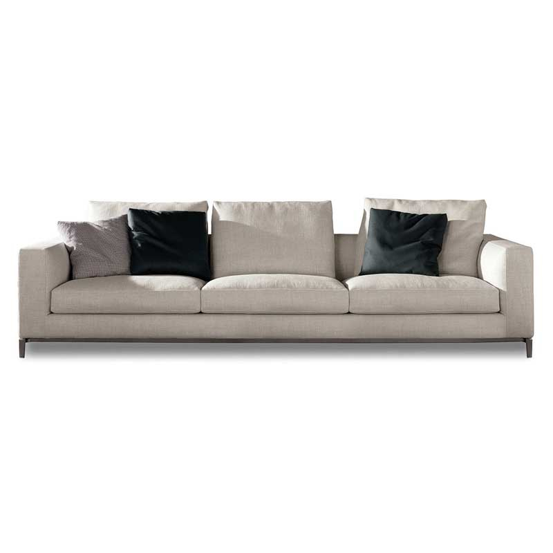 aesthetic is expressed in the balance of its proportions, the harmony of its forms and the attention to detail in its construction. These characteristics are responsible both for its eclecticism and for its ability to appeal to tastes ranging from minimalist chic to a more decorative style. Different minds think alike about this product, which meets an ideal of inviting softness and warm intimacy. This sofa is raised from the floor by a lightweight base and elegant die-cast metal legs, lacquered in pewter, an exclusive shade designed by