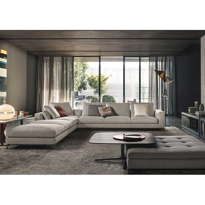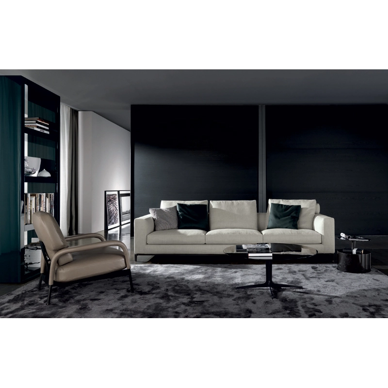 Minotti Studio. Thanks to the slight tilt of the seat and its soft, welcoming upholstery,