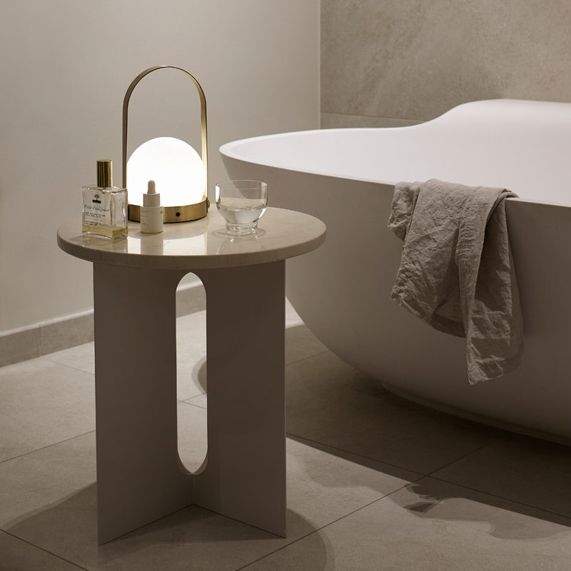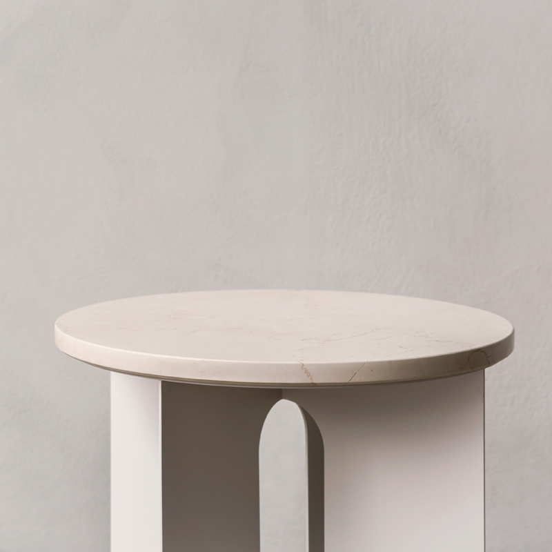 The Androgyne side table was initially designed by Danielle Siggerud for the Menu Space café, but it soon stood out for its playful, elegant silhouette. The Androgynous table features a marble top that contrasts with its slender laser-cut steel legs, which form a balanced base. With its sleek yet sculptural silhouette, Androgyne by MENU knows how to adapt to any environment.