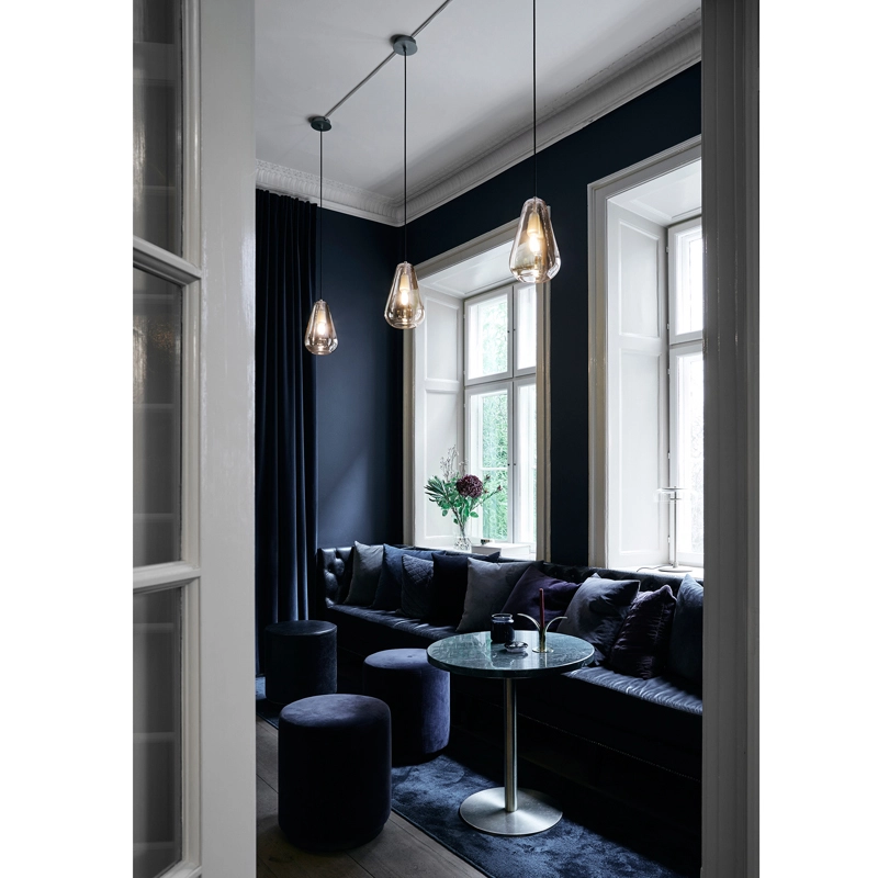 Anoli collection captures the tranquillity of falling water drops. Given a simple expression, the collection is composed of drop-shaped pendant lights made of mouth-blown glass. Published by