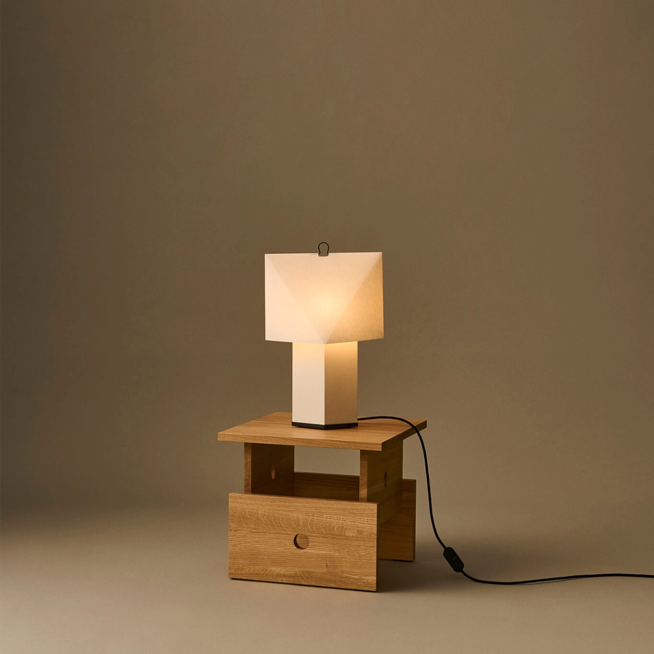 HAY stands out for its folded paper construction, creating a light yet sculptural aesthetic. Delivered flat, it is assembled by the user through precise folds and angles that give it volume and a clean graphic form. Its paper surface softly diffuses light, evoking the warm glow of a candle and creating a cozy atmosphere. Minimalist and clever, it features a discreet metal hook that makes it easy to position and move. Available in two sizes, it fits effortlessly on a table, shelf, or windowsill, adapting to a variety of interior settings.