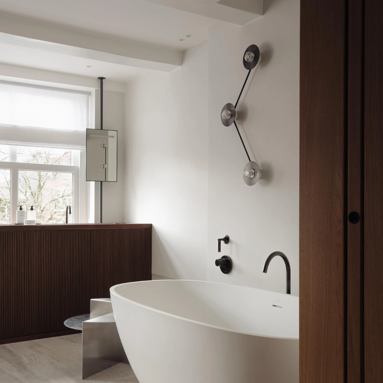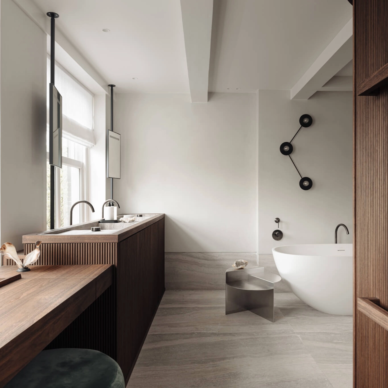 With its symmetrical composition and assertive visual balance, the Alba Double Wall Angle wall lamp structures the space while diffusing an enveloping light. Imagined by the Spanish studio Contain, founded in Mallorca by Mauricio Obarrio and Juan Peralta, it translates a contemporary approach to lighting, where form subtly dialogues with interior architecture. Thought to diffuse the light in a soft and homogeneous way, theAlba Double Wall Angle< creates a double luminous halo that enhances the wall and accentuates the depth of the space. Its sleek silhouette allows it to fit naturally into a high-end residential interior, a hotel hallway or a contract project seeking an elegant and mastered light signature. Both graphic and timeless, theAlba Double Wall Angle< reflects the philosophy of Contain : combining essential lines, carefully selected materials and careful manufacturing to design luminaires with a strong aesthetic presence, while maintaining a great formal sobriety.
