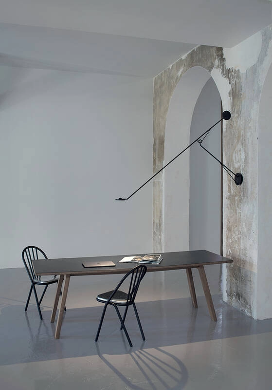 A sphere as a hinge, leaving room for infinite directions. A sphere that has no left, no right, no top and no bottom. As the central element of the lightAARO WALL, this sphere allows everything else to gravitate around it. Geometry, balance and friction. It's all down to her. DCW Edition offers AARO Wall, a wall light that seems to float in the air, gravitating around its central piece like planets in orbit.