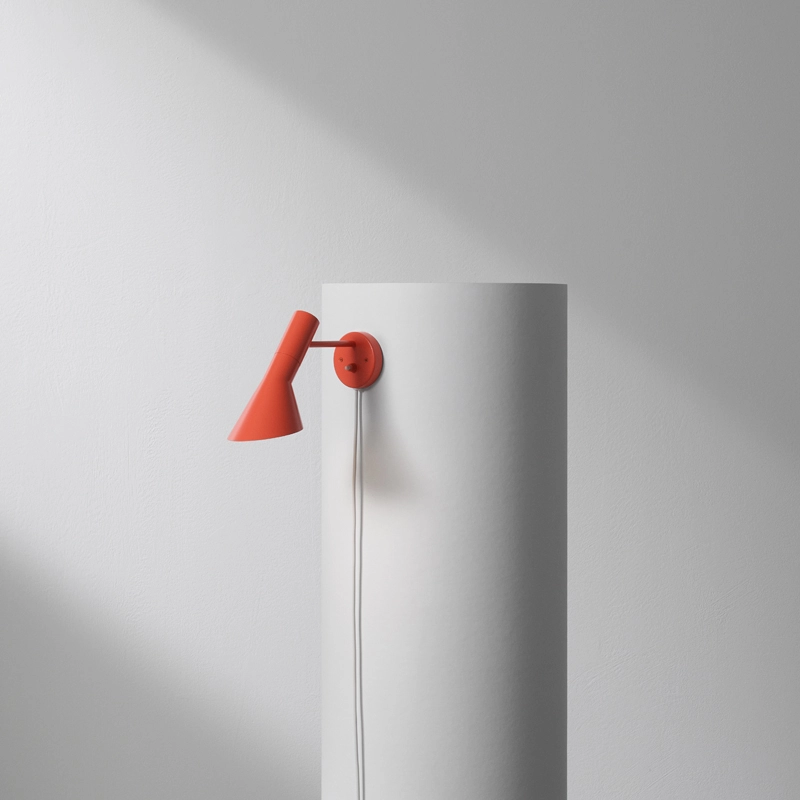 Designed by Arne Jacobsen and published by Louis Poulsen in 1960 for the SAS Royal Hotel in Copenhagen (Radisson Blu), the AJ luminaires were originally part of the complete design concept created for the Hotel. Arne Jacobsen not only drew up the plans for the hotel, but also imagined every detail of its interior design. Many of the products designed for this occasion are now design icons, such as the Egg and Swan armchairs. The applique AJ is characterised by the distinctive asymmetrical shape of its adjustable shade. It consists of a round base, a tubular base and a truncated conical diffuser. The inside of the shade is painted white to make the light more comfortable. The adjustable diffuser and interior of the applique AJ Wall is painted white, to make the light softer and more comfortable. This wall light combines pure, timeless design with excellent lighting qualities. Now seen as an icon of Scandinavian design, it is synonymous with elegance and lightness. The applique AJ emits an asymmetrical, direct and powerful light, directed downwards. The AJ lamps have also achieved worldwide renown. The AJ luminaires by Louis Poulsen remain over time modern classics in the field of design luminaires