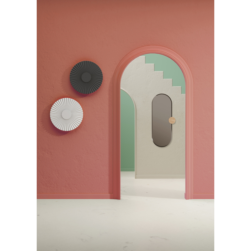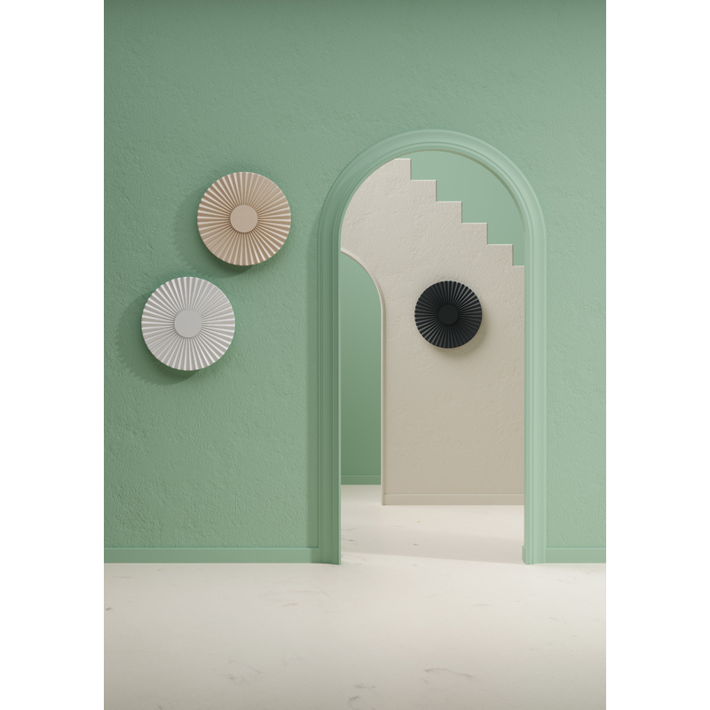 With Carmen, the PaulinePlusLuis studio has designed a collection of lighting fixtures with captivating graphics for Hartô. Like the pendant lights in the series, the Carmen wall lamp is distinguished by its pleated textile corolla and matt lacquered metal core from which light streams. In any room of the house, alone or in a composition of several elements, the applique Carmen brings warm light and an elegant atmosphere.  Made 100% in France, the applique Carmen is equipped with a ribbon LED light source, and offers 2 installation options: directly plugged into a wall outlet or plugged into a socket, thanks to the cord with switch supplied.