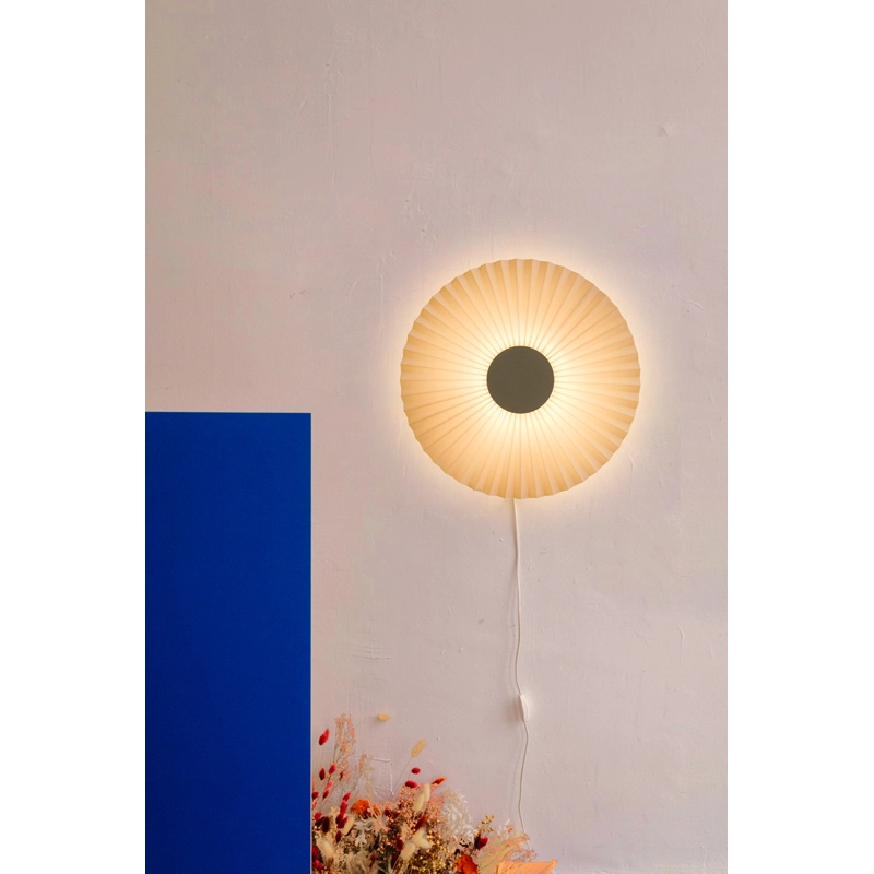 With Carmen, the PaulinePlusLuis studio has designed a collection of lighting fixtures with captivating graphics for Hartô. Like the pendant lights in the series, the Carmen wall lamp is distinguished by its pleated textile corolla and matt lacquered metal core from which light streams. In any room of the house, alone or in a composition of several elements, the applique Carmen brings warm light and an elegant atmosphere.