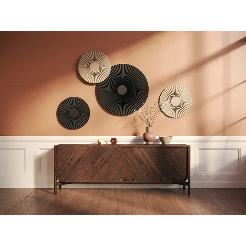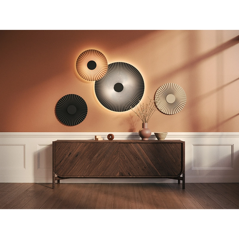 With Carmen, the PaulinePlusLuis studio has designed a collection of lighting fixtures with captivating graphics for Hartô. Like the pendant lights in the series, the Carmen wall lamp is distinguished by its pleated textile corolla and matt lacquered metal core from which light streams. In any room of the house, alone or in a composition of several elements, the applique Carmen brings warm light and an elegant atmosphere.  Made 100% in France, the applique Carmen is equipped with a ribbon LED light source, and offers 2 installation options: directly plugged into a wall outlet or plugged into a socket, thanks to the cord with switch supplied.