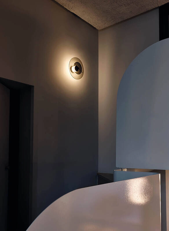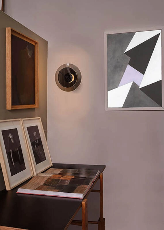 Delumina Wall by DCW is a wall light made up of two glass discs which, through a playful and surprising process lets a subdued light shine through. Using a thumbwheel, it is possible to vary the shade of the upper disc of this sconce proposed by DCW. This changes from transparent to totally opaque, allowing more or less light through as required. Delumina is available in two sizes.