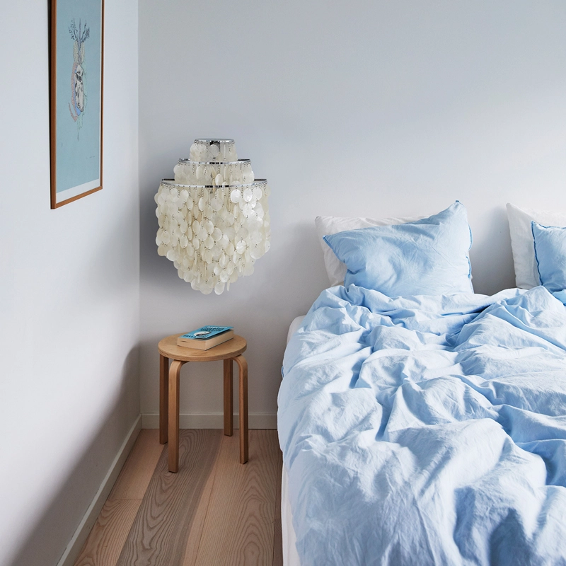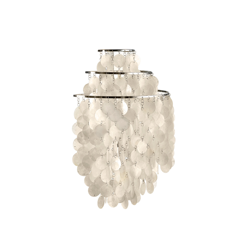 Many consider the Fun collection to be one of Verner Panton's greatest masterpieces of lighting design. Since 1964, it has been a source of joy and a wealth of stories. Made up of dozens of shell discs suspended from a 3-ring metal structure, the Fun 1WM Verpan wall light will illuminate your home with elegance.