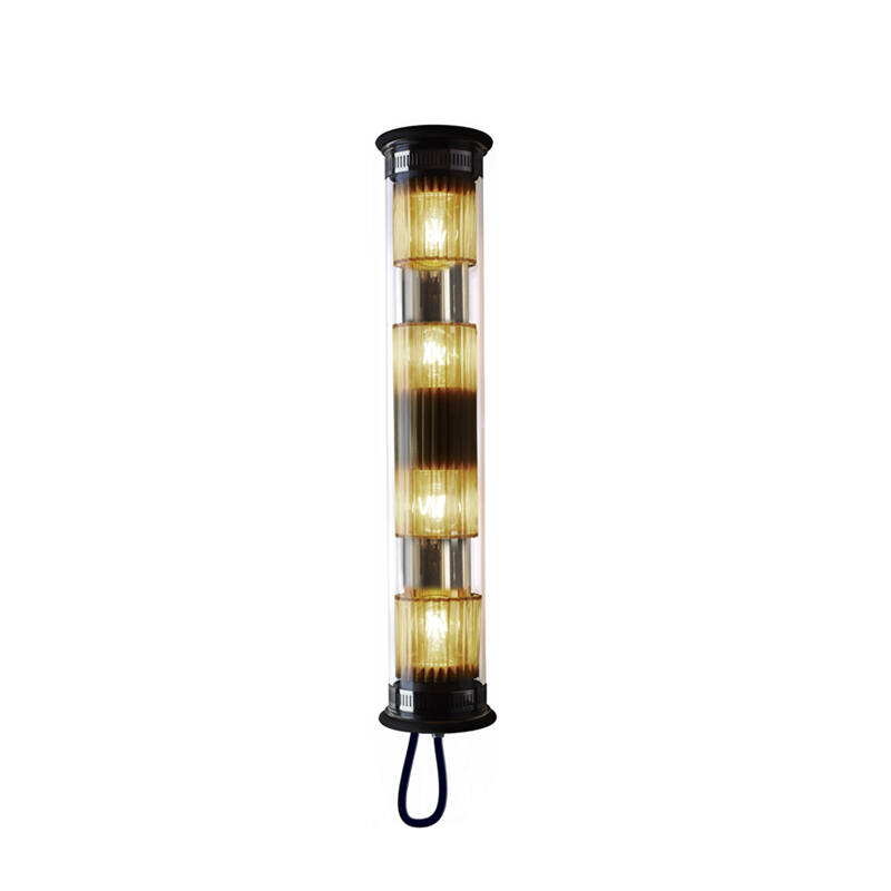 The "IN THE TUBE" collection is made up of strong models, free figures and constraints in faith. IN THE TUBE is available in borosilicate glass, closed with aluminium plugs, silicone-capped, with stainless steel clamps. IN THE TUBE diffuses filtered, softened, directed light by the simple fixed or removable positioning of a shaped filter mesh or reflector, whose very material "gives" the colour.