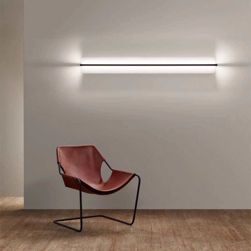 Designed by Sebastian Herkner, the Kontur collection from Vibia is recognisable by its delicate black metal frame. Kontur presents itself as an elegant staging of a linear luminaire, whose structure incorporates LED sources and is combined with various diffusers and reflectors to create a lighting ambience.
