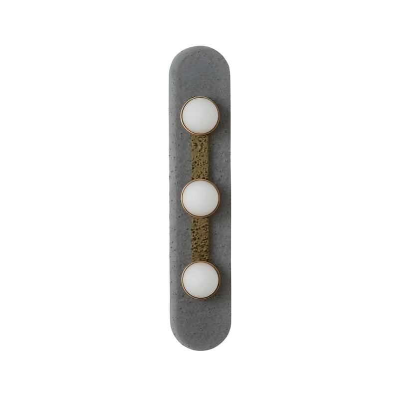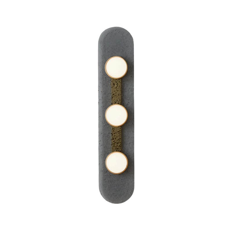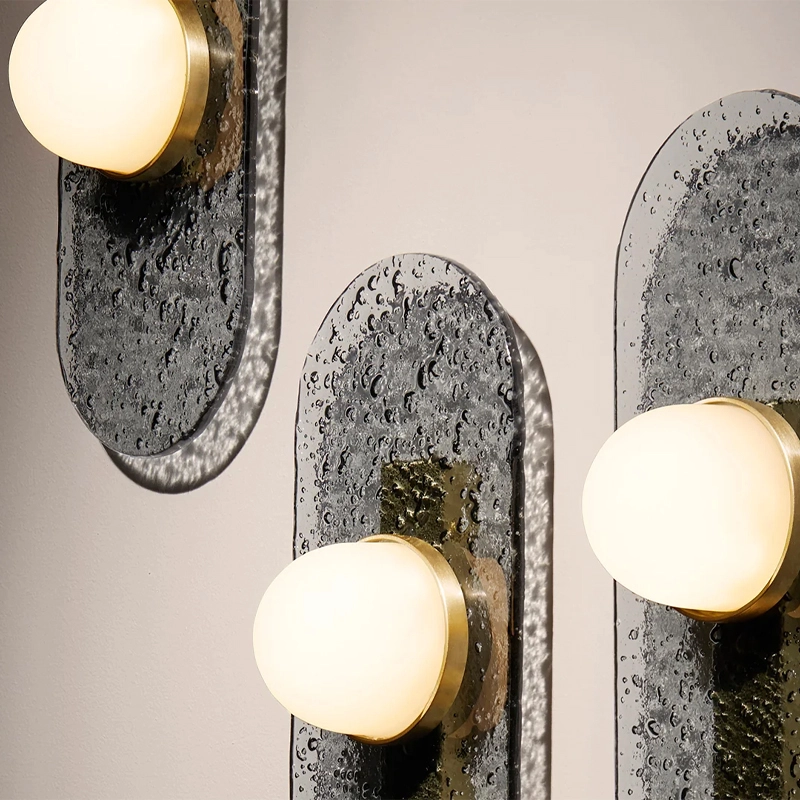 Created for CTO Lighting by Italian designer Federico Peri, Modulo Triple IP44 is a wall light that stands out for its sculptural shape and high-quality materials. Combining functionality and craftsmanship, the geometric design of Modulo links light sources spaced in a linear pattern on a metal frame, allowing light to reflect along the transparent glass panel. Each Modulo smoked glass wall light is unique, handmade and textured by artisans. The aesthetics of this luminaire mean it can be used in a wide variety of combinations to decorate a room or frame an entrance. Combined with each other, the Modulo wall lights create a striking composition; used on their own, they become refined decorative elements.