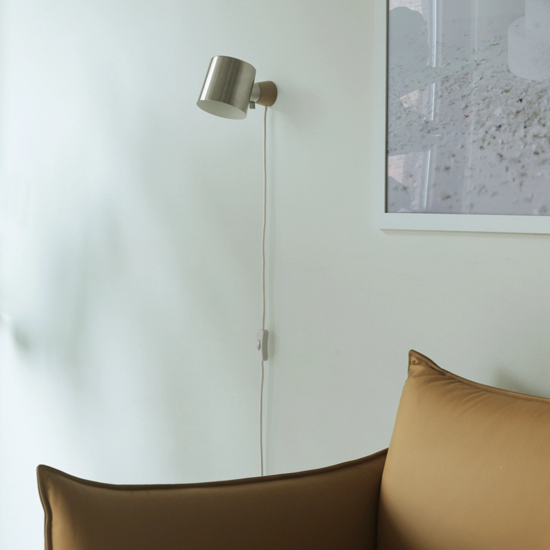 Marianne Andersen has created the Rise wall light for Normann Copenhagen. Sober and light, its pure lines represent the harmony between minimalism and welcoming allure. Simplicity was the designer's guiding principle during the conception of the applique Rise. Marianne Andersen wanted to create an immediate and intuitive object, showing only its essential elements.It consists of a base made of ash wood and a cylindrical lampshade assembled by means of a swivel joint, which allows the diffused light to be directed, causing the lampshade to rotate on the base. So, with a simple movement, you can switch between direct and indirect lighting, making Rise an ideal lamp for reading as well as contributing to the mood of the room. The Normann Copenhagen wall light is available in three neutral shades, white, black and grey, as well as an elegant petrol green and a bright yellow.