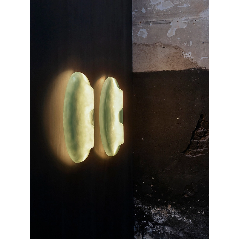 Created by Studiopepe for the house of Tacchini, the applique Solstice is an elegant creation inspired by art and in particular by the work of Italian artist Enrico Castellani. Its fibreglass design filters the light, creating a play of light and shadow. The applique Solstice offers a warm, almost magical atmosphere thanks to its organic shape. Solstice is a captivating and original artistic piece thanks to its use of fibreglass and its organic form.