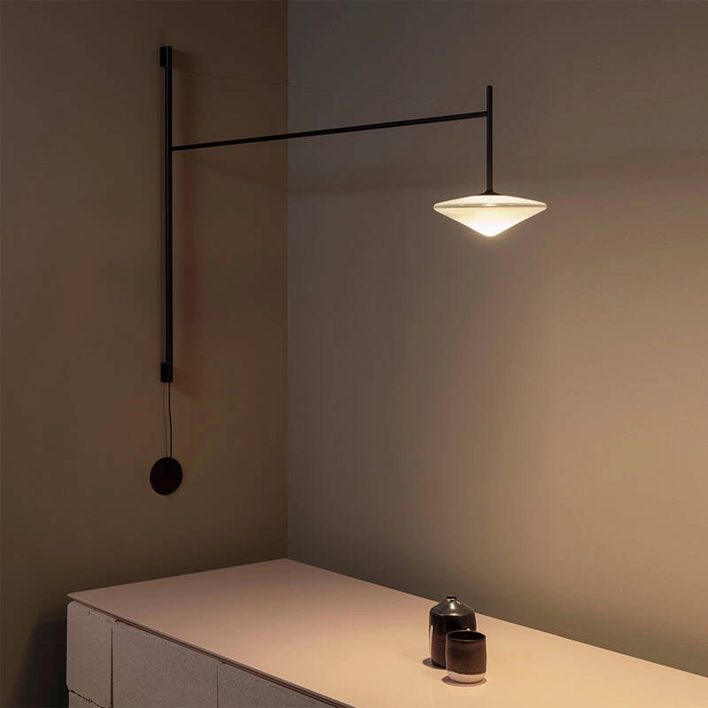 Designed by Lievore Altherr, the Tempo luminaires by Vibia were inspired by the idea of developing a universal lighting language. To this end, the designers researched luminaire archetypes from various regions and cultures around the world, ultimately focusing on three styles.  They have distilled them down to their most basic forms, retaining the look and feel of each while creating a single, unified lighting system.  The LED-powered collection explores the effect of opacity, translucence and transparency in different shapes of glass diffuser, each providing unique lighting moods. Simple and understated, Tempo celebrates the stripped-back beauty of a pared-back aesthetic. One version of the Tempo wall lamp features a classic round bulb with a minimalist disc-shaped shade that directs the light downwards, while another version imagines the classic glass globe in the form of an oval diffuser with progressively opaque glass that emits a soft glow.  Glass diffusers from Tempo are available as wall lights, either single stemmed or cantilevered, to suit a wide range of styles and spaces.
