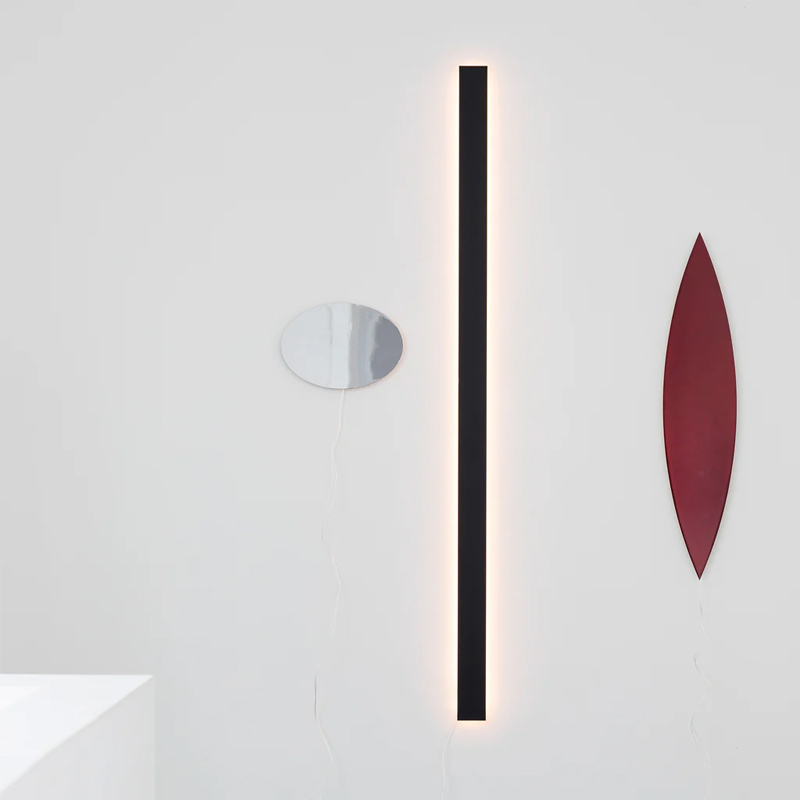 Small wall decorations enveloped in a halo of light, Maria Scarpulla's Tramonti collection can be summed up in this way. Even after adding the necessary functionality to a lamp, the small paintings published by Valerie Objects are haloed by added light: hence the name Tramonti, a word meaning sunset in Italian. Tramonti is available in five different shapes and equally different colours - deep blue, dark red, off-white, dark green, black - which can be easily combined to create a beautiful composition. An oval structure is added in stainless steel to create an extra mirror-like sparkle. The Tramonti sconce collection comes in six different models to best suit your decor.