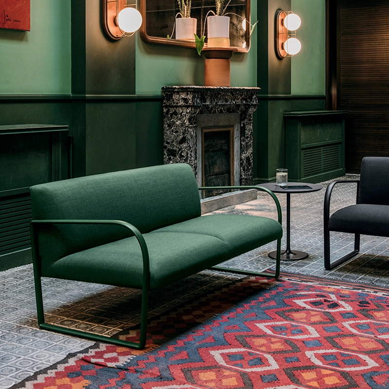 Arcos is nevertheless graphically very present, thanks to the signature of these two aluminium armrests evoking the elegant rhythm of the arcades in the corridors and staircases of classical architecture. The Arcos