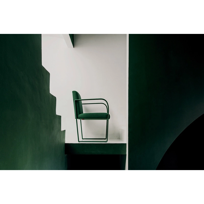 Arcos is nevertheless graphically very present, thanks to the signature of these two aluminium armrests evoking the elegant rhythm of the arcades in the corridors and staircases of classical architecture. The