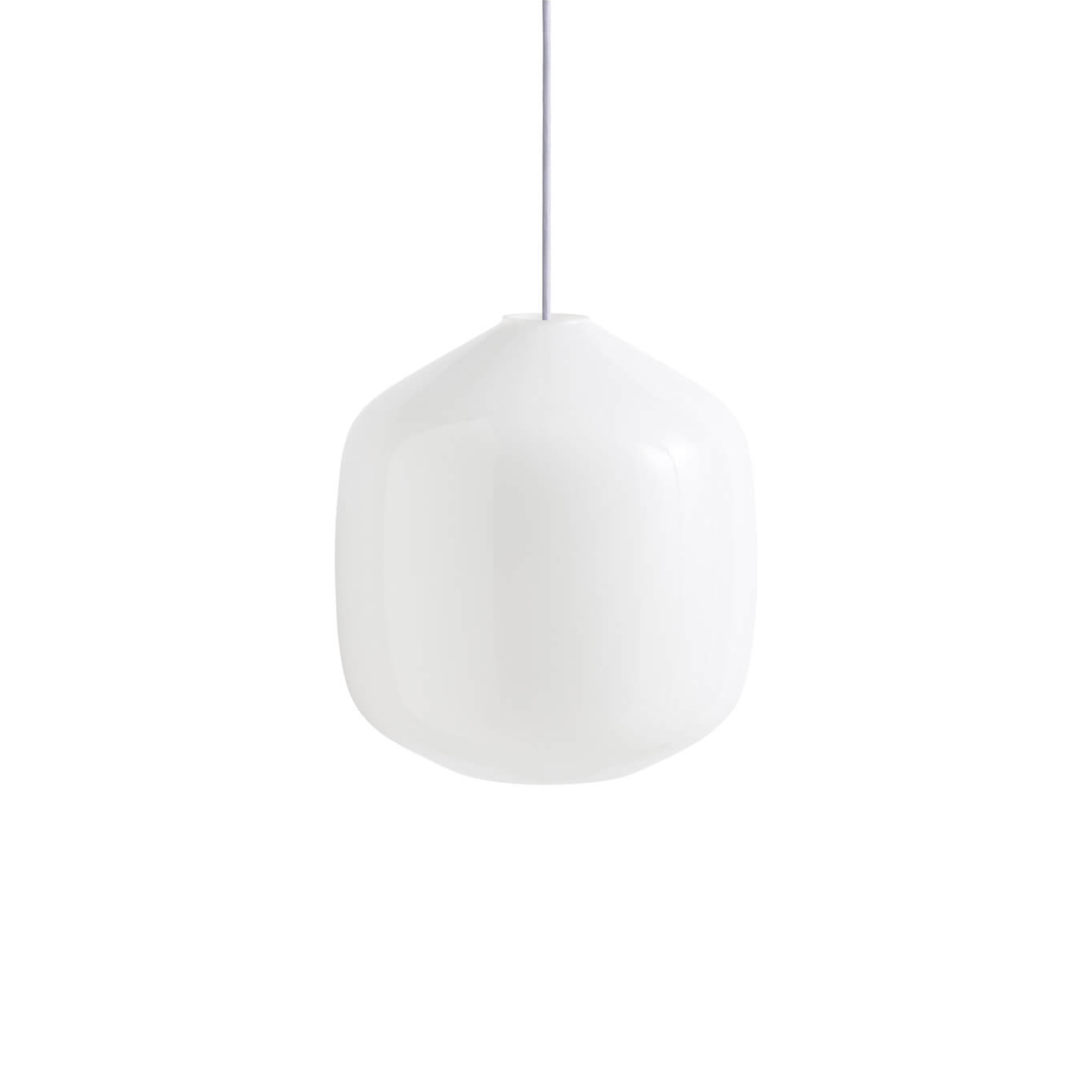 Designed for HAY by the Danish design studio Aspekt Office, the Aspekt Buoy Glass Pendant combines elegant aesthetics with functional design to provide ambient light that naturally blends into its surroundings. Featuring an opaque blown glass shade paired with HAY's Common Cord Set, its organic and clean design offers a simple yet captivating lighting solution. This pendant fits perfectly in bedrooms, hallways, or above kitchen islands or dining tables, bringing a warm and welcoming atmosphere. Easy to mount and maintain without the need for tools, the shade is available in two sizes, with cord sets offered in various colors.