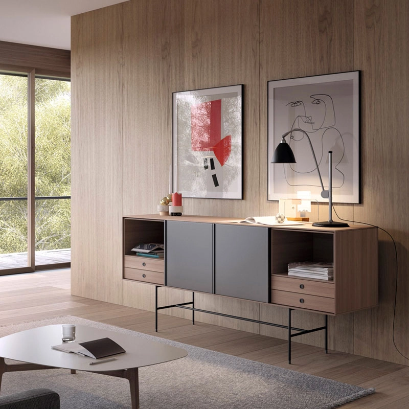 Treku designed especially for the collection reinforce this retro, timeless image. The finishes selected are particularly noteworthy: walnut and oak with a very natural finish, and lacquers that blend perfectly with the wood.