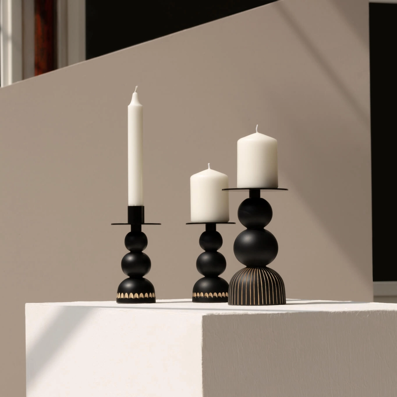 Candle Holder, Candlestick and Candle AURORA small Maple black ZANAT