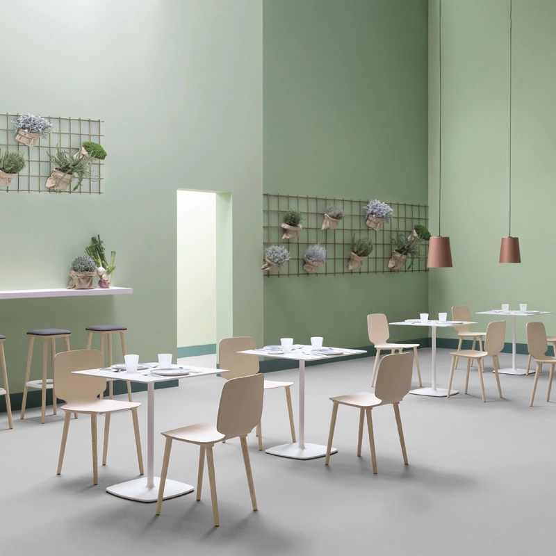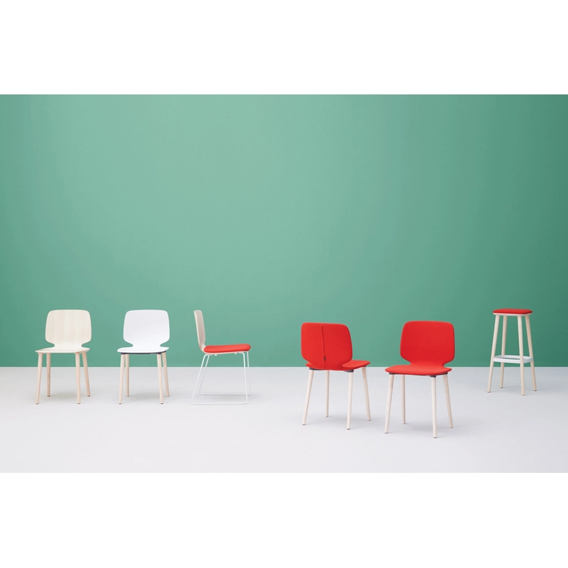 Babila 2700 chair features an ash plywood shell of varying thickness and solid ash legs. Its wooden composition has made it possible to create a chair that is both elegant and warm, flexible and sturdy. Edited by