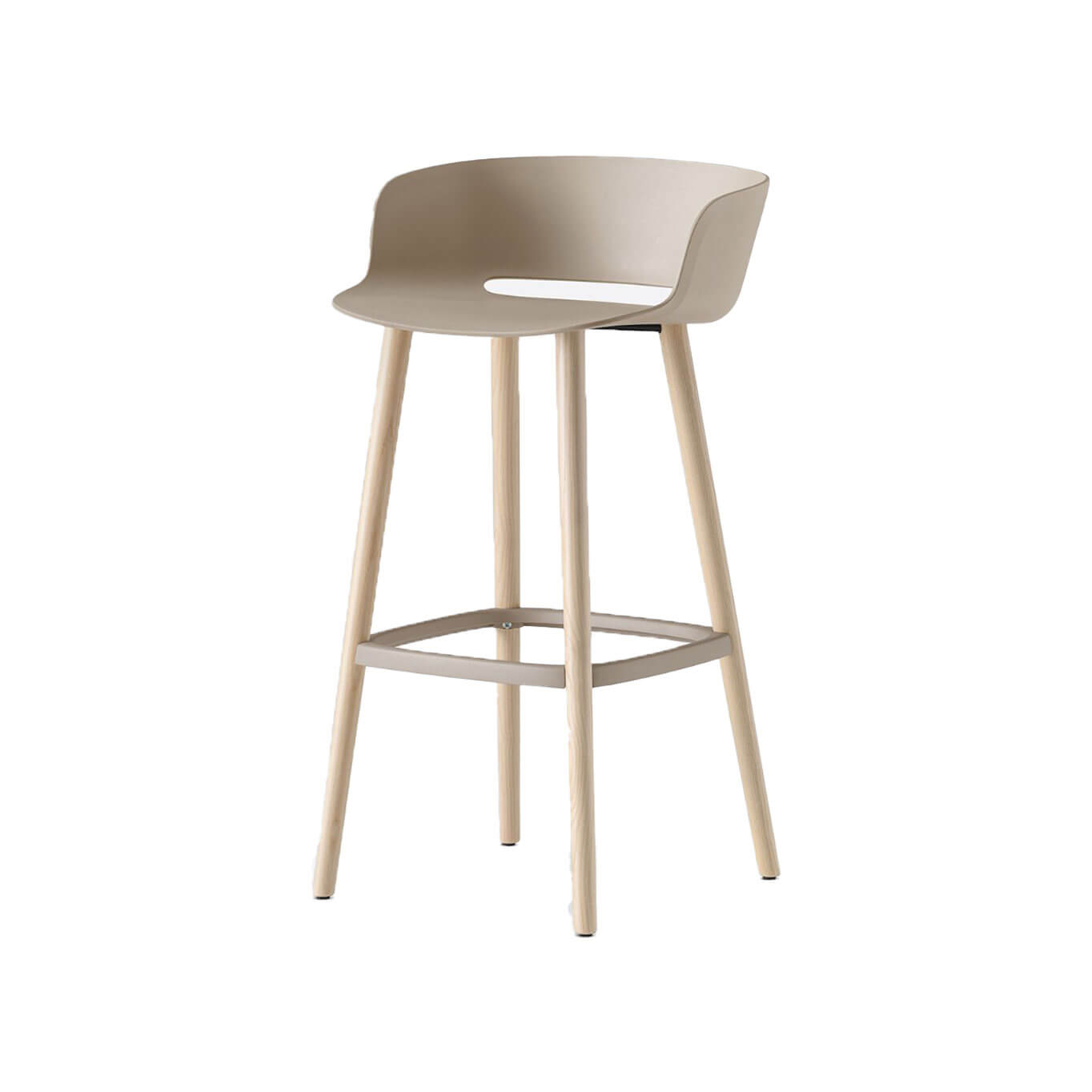 The pre-owned high stool Babila from the brand Pedrali brings a touch of elegance and modernity to any space. This model enriches the Babila family by seamlessly fitting into a collection that recalls classic shapes while staying true to its contemporary identity. Its functional seat made of recycled polypropylene ensures lightness and durability, while its solid ash wood legs provide natural strength and a warm aesthetic. The die-cast aluminum footrest adds a practical element and a subtle contrast of materials. Designed to blend tradition and innovation, the high stool Babila stands out for its balanced design, durability, and comfort, making it an ideal choice for professional or domestic spaces seeking furniture that is both functional and refined.