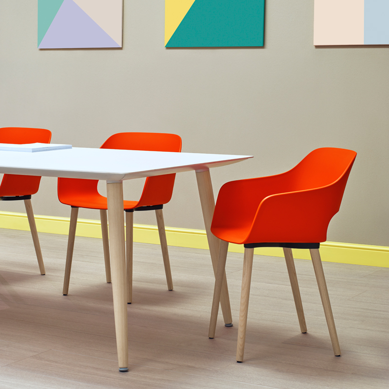 Babila collection moves nimbly between tradition and innovation. Its strength lies in its simplicity and immediacy, reminiscent of a timeless form. The use of polypropylene has made it possible to create a very comfortable shell that is both flexible and resistant. The solid ash legs of the